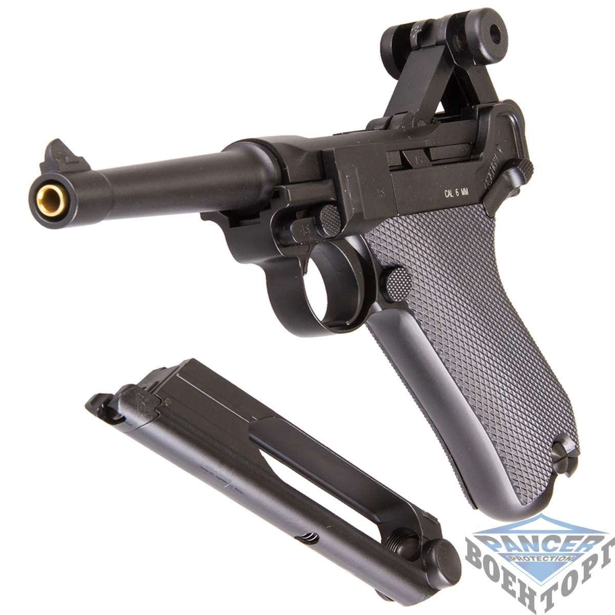 Основные характеристики Пистолет пневматический KWC P 08 (130 м / с, 18-ти зарядн, 820 г., (Люгер)