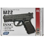 ISSC M22 - это пневматический пистолет от датского производителя страйкбольного и пневматического оружия ASG. Оригинальная модель M22 была разработана австрийской компанией ISSC на основе легендарного пистолета Glock 19. Ключевой особенностью пистолета М22 является боеприпас, который в нем применяется - патрон калибра 22LR.