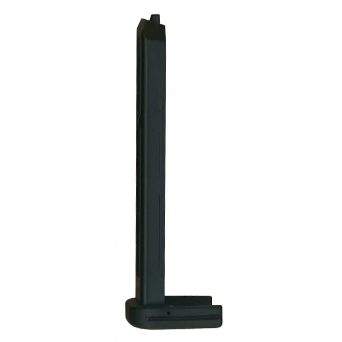 Извлекаемый посредством кнопочного механизма магазин служит местом хранения только для шариков. Для установки и фиксации баллона СО2 следует оттянуть рукоятку назад, открыв специальную камеру для баллона. Таким образом, замена израсходованного баллона производится намного проще и быстрее.