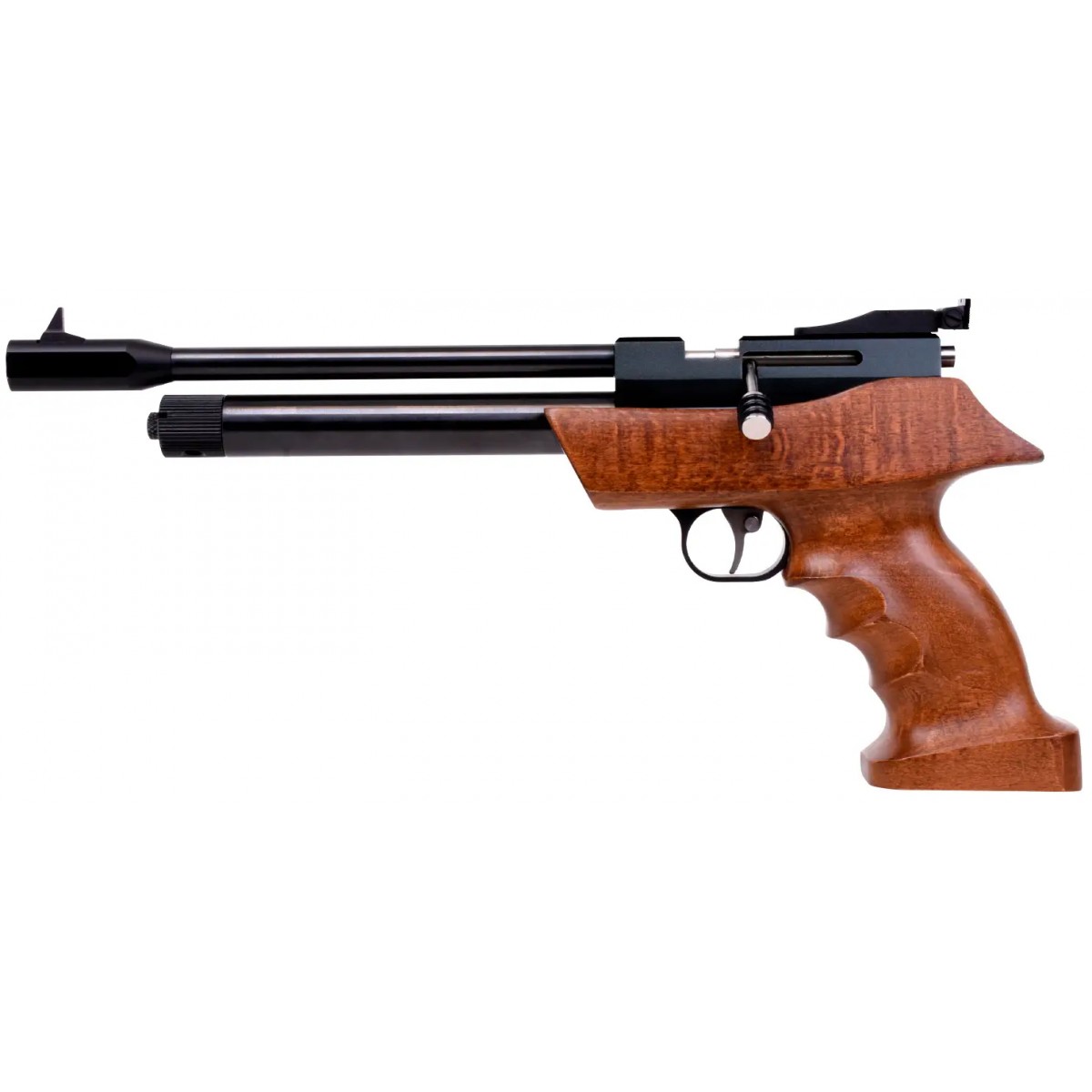 Штатно пистолет укомплектован съемным магазином на 9 пневматических пуль 4,5 мм. Эргономичная деревянная рукоять отлично лежит в руке.