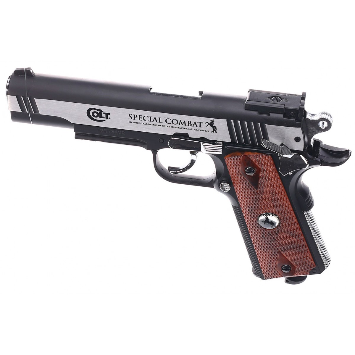 Colt Special Combat Classic – полностью металлическая реплика легендарного пистолета. Кожух затвора ограниченно подвижен, но система blow back на этой модели отсутствует. На рамке смонтирована небольшая планка Weaver для установки дополнительных аксессуаров. Накладки на рукояти из полимера «под дерево». Емкость магазина составляет 19 шаров типа ВВ, которые покидают ствол со скоростью около 120 метров в секунду. Подтверждением наличия стали в конструкции пистолета служит его масса – 980 граммов с неснаряженным магазином.