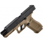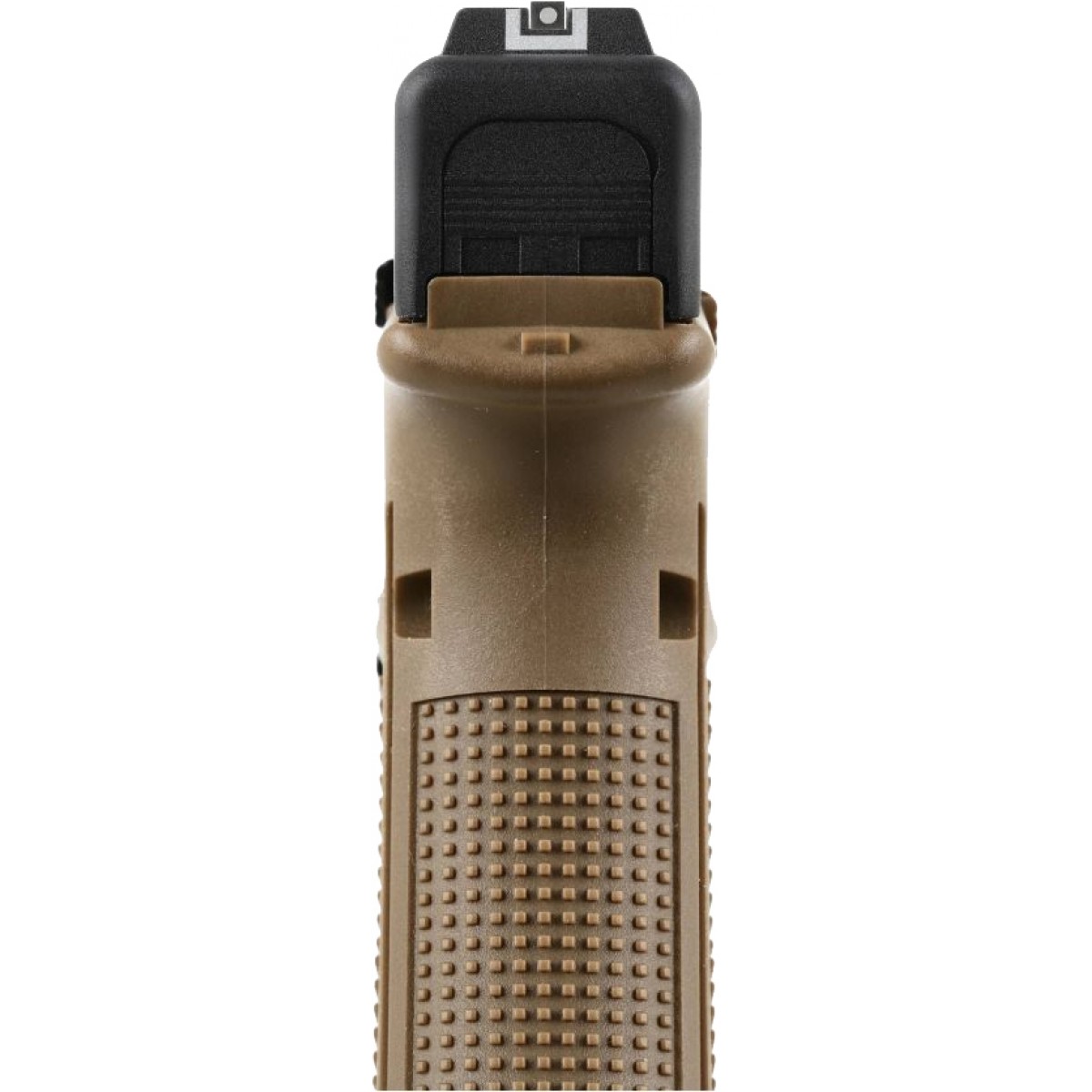 В этой модели пистолета Glock 17 Gen5 от Umarex рамка выполнена в цвете койот. Также пистолет оснащен системой имитации движения затвора и отдачи Blowback, которая придает реалистичности при стрельбе. В качестве боеприпаса в данной версии применены пульки ВВ калибра 4,5 мм. Емкость магазина - 18 пулек.