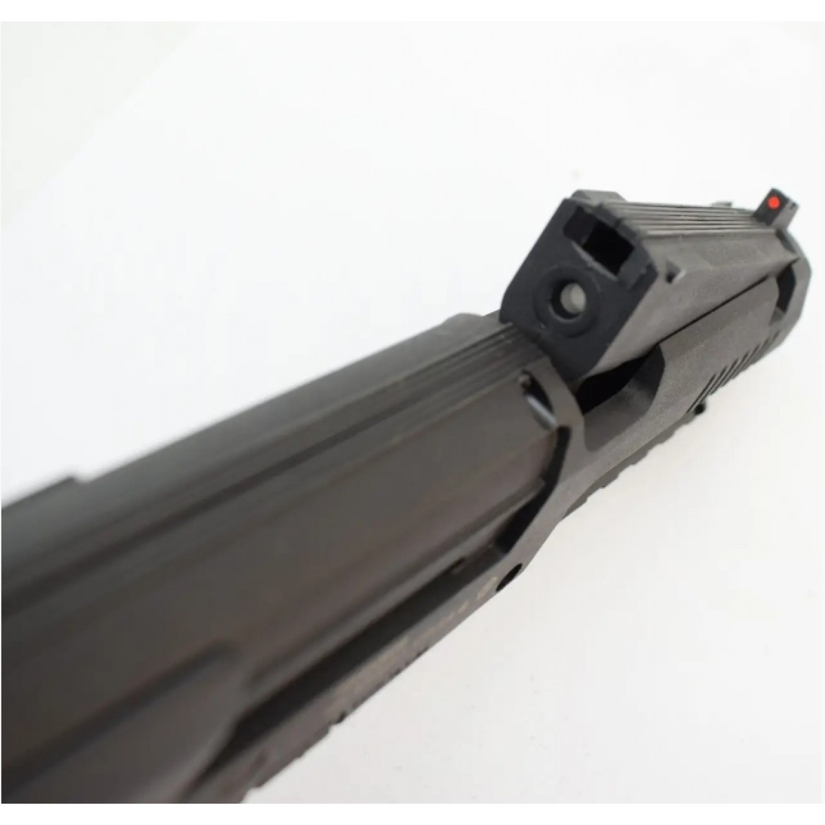 Под стволом находится планка RIS, позволяющая установить дополнительные аксессуары, такие как фонарик или лазерные указатели цели. Пистолетная рукоятка оснащена специальной противоскользящей текстурой , которая обеспечивает безопасный и стабильный захват пневматического пистолета.