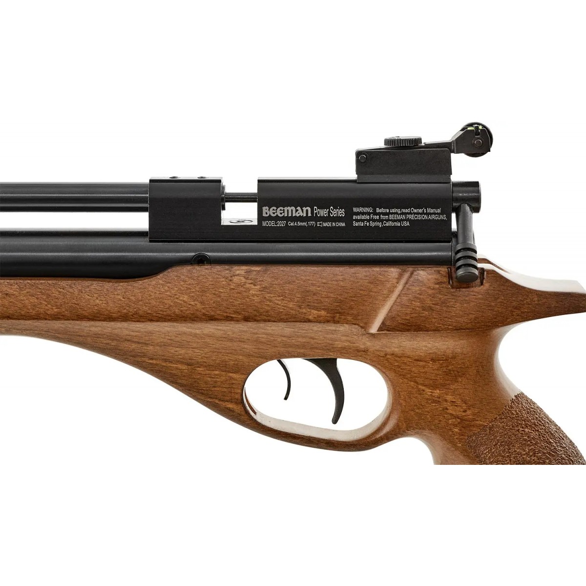 Beeman 2027 – это пневматический PCP-пистолет калибра 4,5 мм с прямоточным способом подачи воздуха. Такой формат пневматики от Beeman в нашем ассортименте впервые. Пневматический пистолет имеет большой бонус в компактности и лёгкости. Однако те же особенности конструкции не позволяют ему иметь большой запас воздуха в резервуаре и сокращают дальность стрельбы.