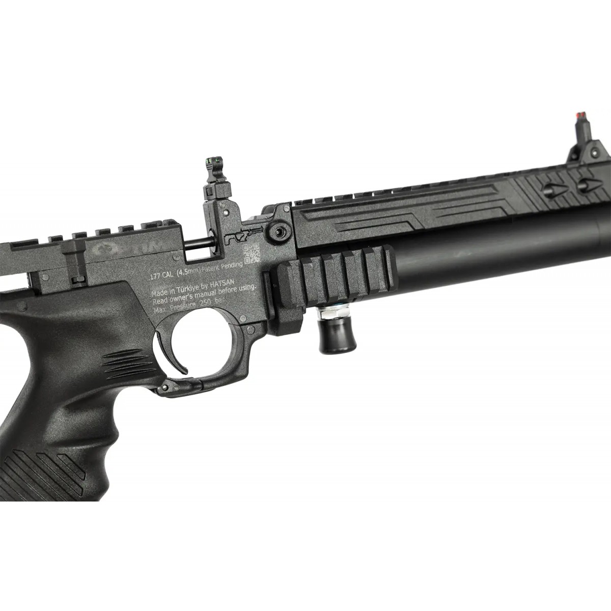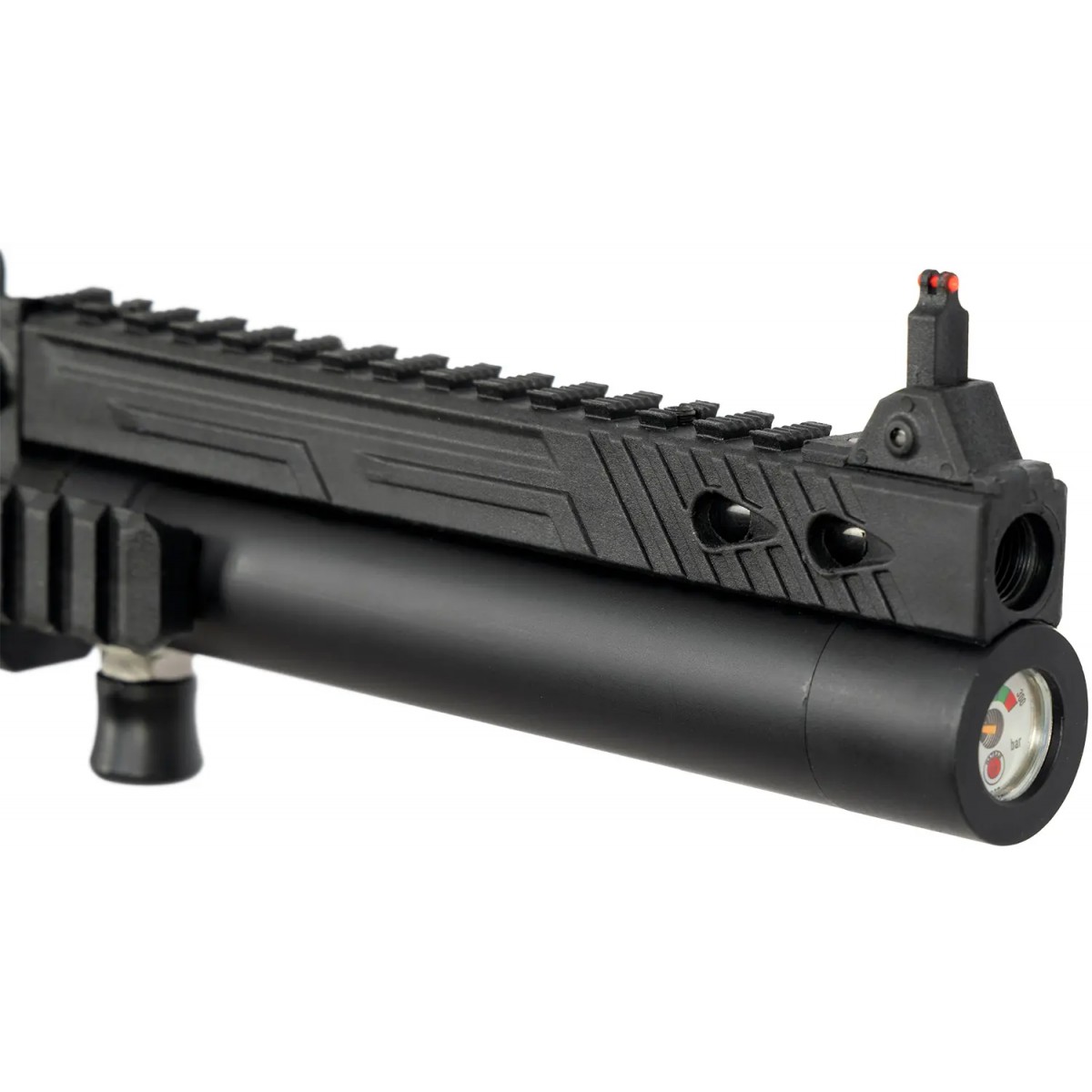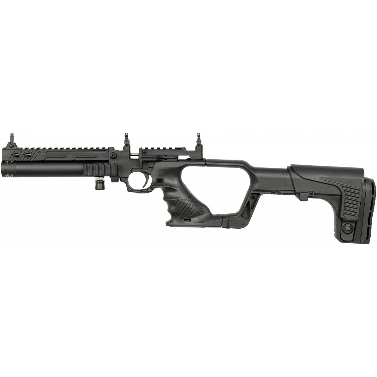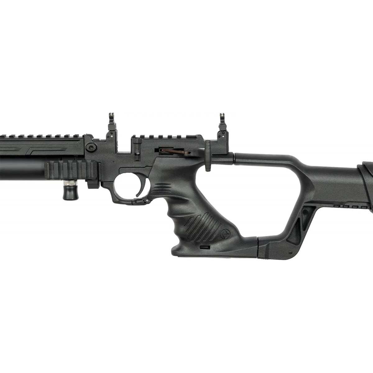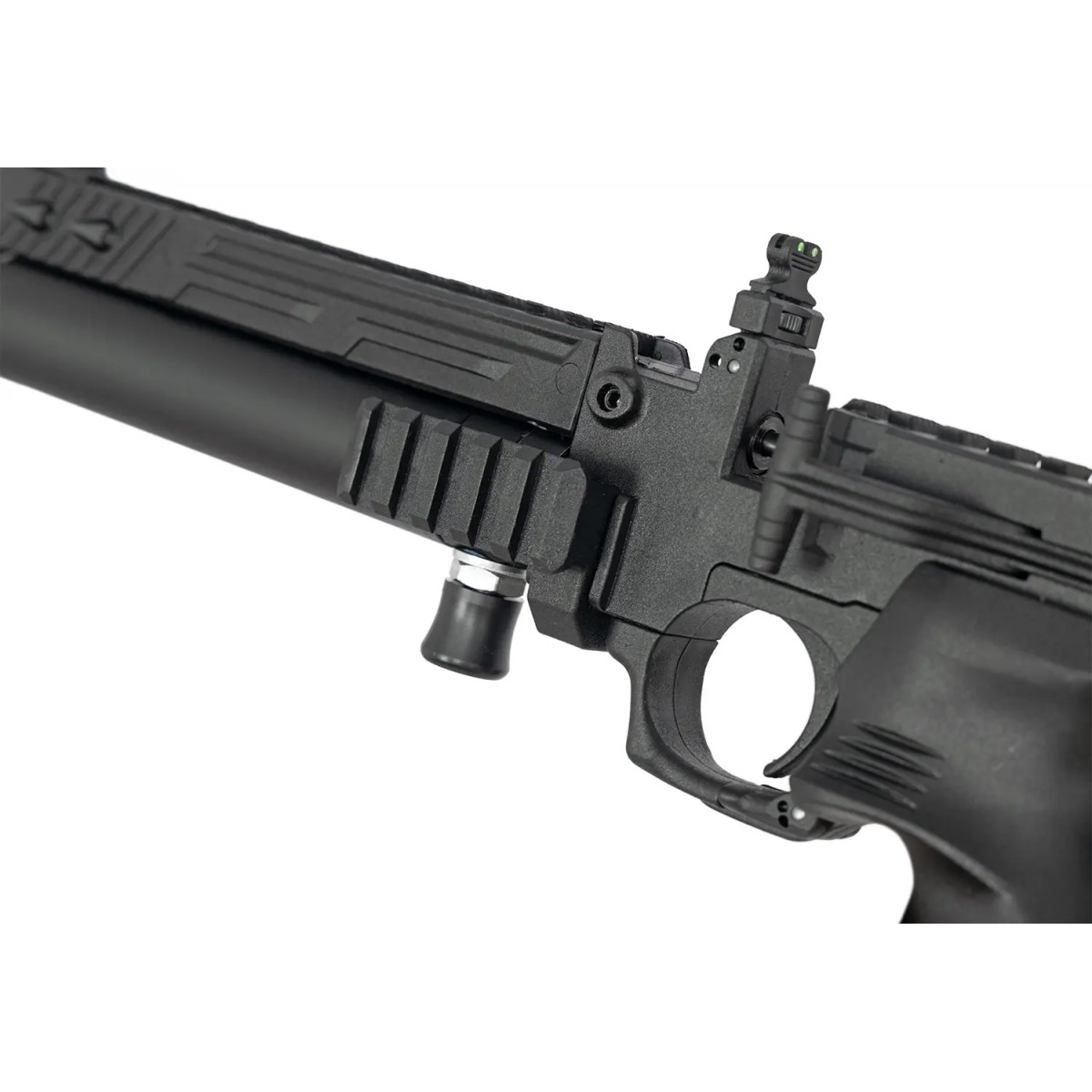 Источником энергии пистолета служит подствольный резервуар высокого давления объемом 40 см3. Стальной ствол пистолета длиной 200 мм способен обеспечить оптимальную кучность на дистанции до 25 метров.