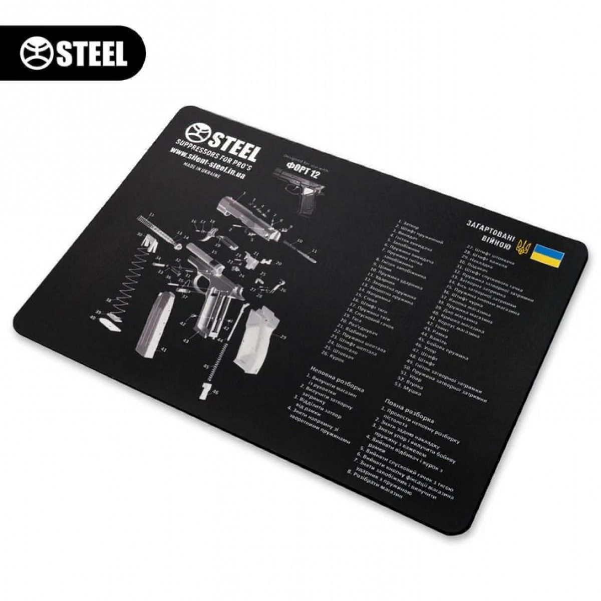 Описание Коврик Steel для чистки оружия с взрыв-схемой пистолета ФОРТ 12