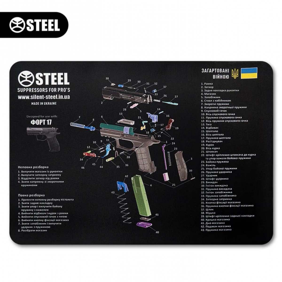 Описание Коврик Steel для чистки оружия с взрыв-схемой пистолета ФОРТ 17