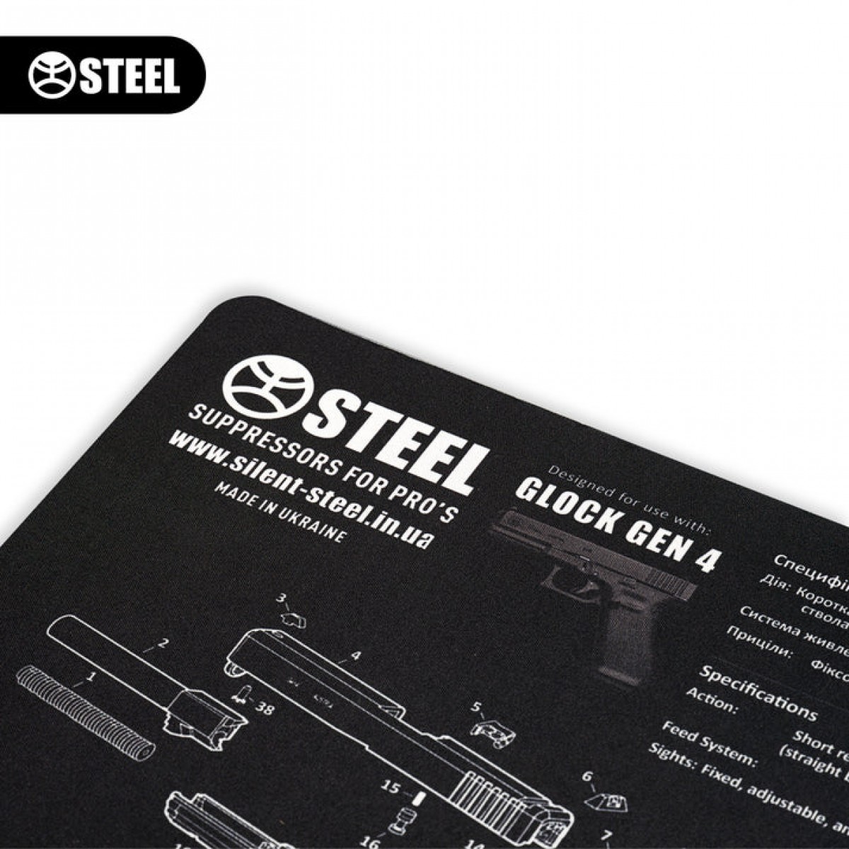 Описание Коврик Steel для чистки оружия с взрыв-схемой пистолета Glock Gen 4