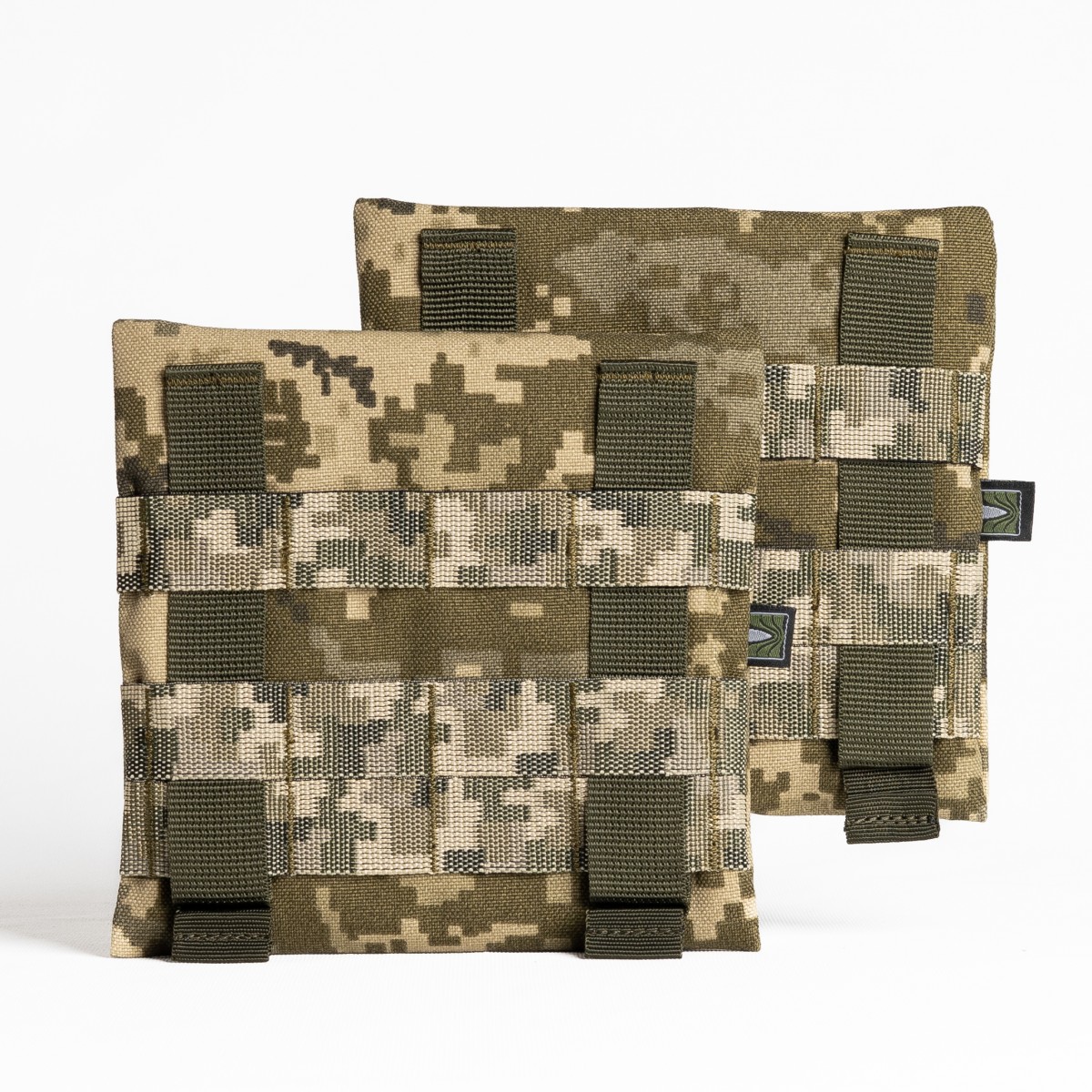 Благодаря размещению мягких баллистических пакетов эти изделия защищают бока военнослужащего от осколков. Карманы обычно крепятся к камербандам (или при необходимости к другому снаряжению) на систему MOLLE. «Баллистика» производит не только собственно подсумки для боковых плит, но и сами баллистические пакеты, которые можно приобрести отдельно. Бронепакеты, как и карманы под них, существуют в различных размерах и форм-факторах, которые выбираются в соответствии с задачами и анатомическими особенностями бойца. Особенности карманов для боковых плит Карманы для боковых плит имеют размер 15×15 см, и их единственное отделение предназначено для установки бронепакетов соответствующего размера 1-го или 2-го класса защиты. Также текстильные изделия отличаются следующими качествами: Прочная ткань обеспечивает устойчивость к износу, истиранию, разрыву, а благодаря водоотталкивающему слою предотвращает попадание внутрь влаги и грязи. Карманы можно крепить на внутреннюю сторону камербанда, чтобы оставить внешние ячейки свободными для навешивания другого снаряжения. Подсумок закрывается на клапан, оснащенный липучкой велкро. На выбор предлагается спектр необходимых камуфляжей – койот, олива, мультикам, ММ-14, черный. Их можно выбрать в соответствии с расцветкой плитоноски или бронежилета. Набор комплектуется двумя карманами. Технические характеристики Размер: 15×15 см. Цвет: ММ-14. Материал: Cordura 1000D. Стропа: нейлон. Липучка: Velcro.Основные характеристики Карманы под боковые плиты 15*15 (2шт) (ММ14)