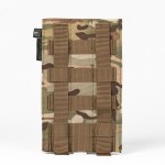 Поворотная платформа предназначена менять вертикальное ориентирование системы MOLLE на горизонтальное. То есть она поворачивает подсумки на 90 градусов относительно снаряжения, на котором они размещены. Это хорошее решение для тех, кто нуждается в боковом доступе к подсумкам вместо стандартного верхнего. Особенности товара Максимально простая конструкция позволяет быстро зафиксировать саму платформу и подсумки на ней. Кроме того, изделие отличается такими качествами: Спереди помещены три ряда ячеек MOLLE по шесть в каждом, которых хватает для шнуровки трех подсумков «Колчан». Сзади нашиты две стропы для крепления на снаряжении. Легкая и тонкая платформа не добавляет лишнего веса или объема. Благодаря прочной ткани и пластиковой вставке хорошо выдерживает нагрузку и держит форму. Технические характеристики Материал: Cordura 500D. Стропа: полиамид, 2,5 см. Размер: 24×14,5 см. Толщина: 3 мм. Вес: 110 г.Основные характеристики Поворотная платформа на плитоноску (Мультикам неоригинальный)