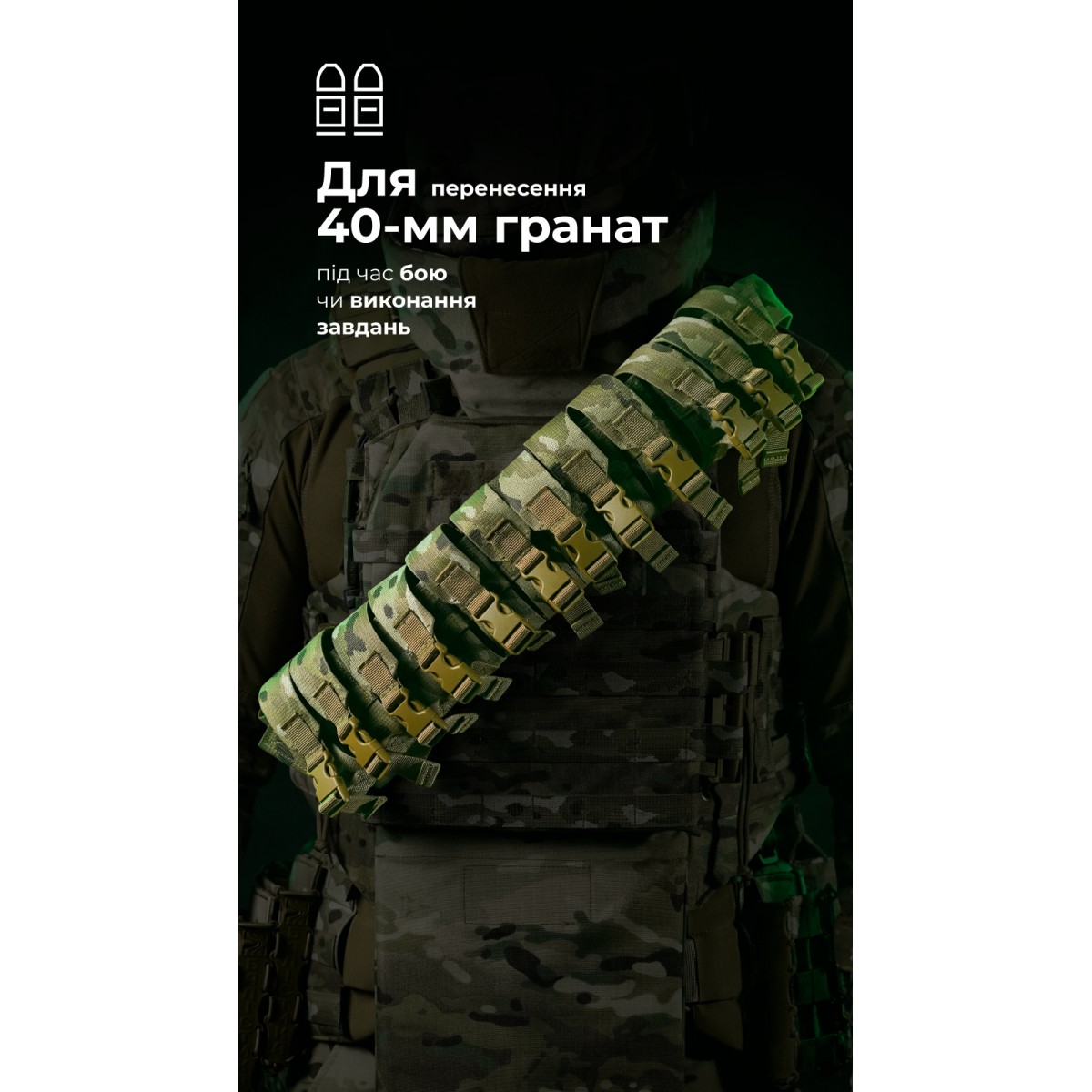 Описание Бандольера под 40‑мм гранаты «Пращ» (на 12 выстрелов | Мультикам) ТМ Баллистика
