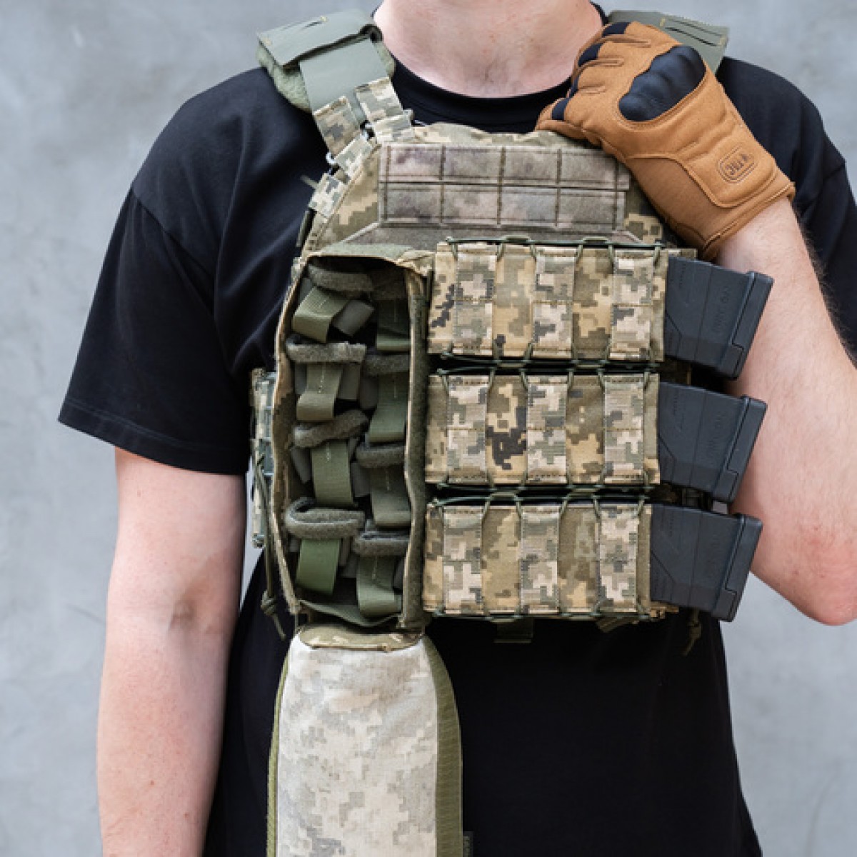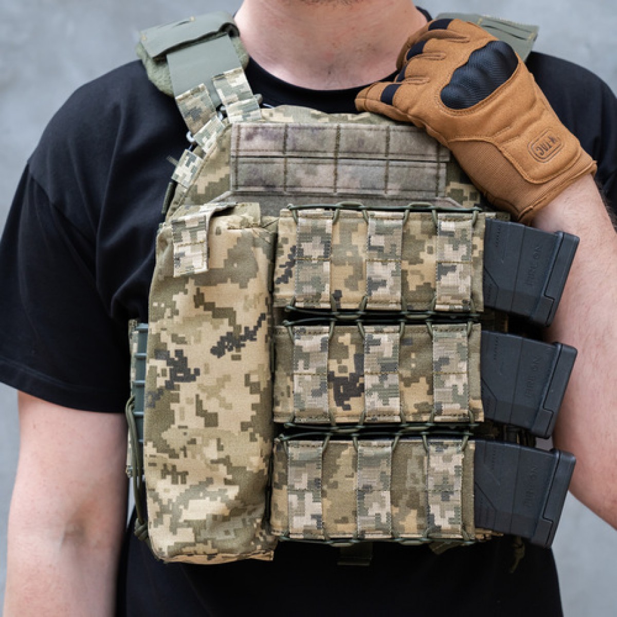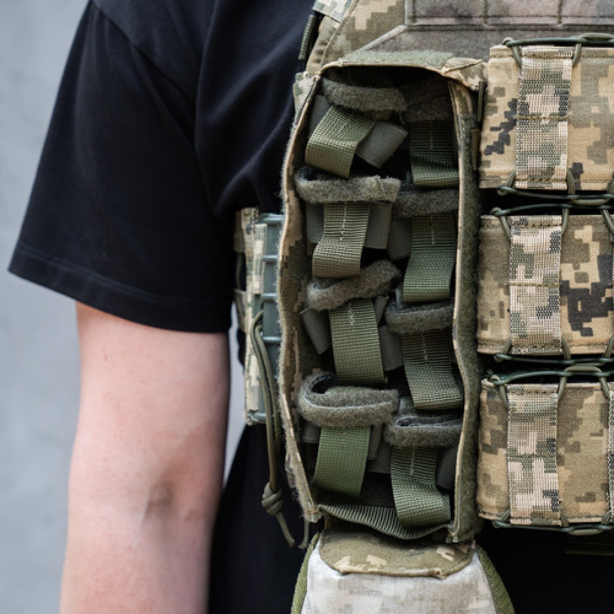 Эти подсумки предназначены предоставлять оперативный доступ к гранатам. Они износостойкие, функциональные и прочно фиксируют боеприпасы, чтобы предотвратить их случайное выпадение. Кассета для гранат от «Баллистика» – это универсальное решение для удобной переноски и использования ручных гранат M67, РГД-5, Ф1, РГО, РГН, DM-51 и подобных. Особенности кассеты для гранат Изделие от «Баллистики» вмещает 3-4 гранаты в зависимости от их типа и позволяет быстро достать и использовать их по назначению. Другими весомыми преимуществами являются такие: Подсумок оснащен надежной системой креплений. К снаряжению он фиксируется на две вертикальные стропы MOLLE, а внутри гранаты крепятся на липучку Velcro. Крышка изделия по периметру также крепится на липучку Velcro, что позволяет быстро и с минимальными усилиями открыть доступ к гранатам. В комплекте содержится восемь одноразовых велкро-паучков, которые цепляют гранату непосредственно к внутренней стенке подсумка. Это позволяет моментально ухватить гранату и бросить ее без необходимости снимать крепления, а это обеспечивает более быструю реакцию в критический момент. Дополнительные паучки можно купить отдельно. Жесткая платформа из MOLLE держит форму подсумка, что позволяет надежно навесить его на снаряжение даже с четырьмя гранатами общим весом до 2,5 кг. Подсумок разработан как штурмовой и подходит для удобной транспортировки большого количества гранат и быстрого использования во время наступательных операций. Для пошива тактических изделий мы используем Cordura 1000D, которая имеет водоотталкивающий слой, является прочной, устойчивой к истиранию, проколам и разрыву. На изделиях используется стропа соответствующего цвета, которая была создана методом плетения, аналогичным Murdock Webbing. Кроме того, на плитоносках и другой продукции используется липучка с соответствующей расцветкой. Технические характеристики Вместимость: 3-4 гранаты. Размер пустого подсумка: 250×80×70 мм. Вес: 210 г. Материал подсумка: Cordura 500D. Стропы: Polyamide 25 мм.Отзывы о Кассета для гранат (ММ-14)