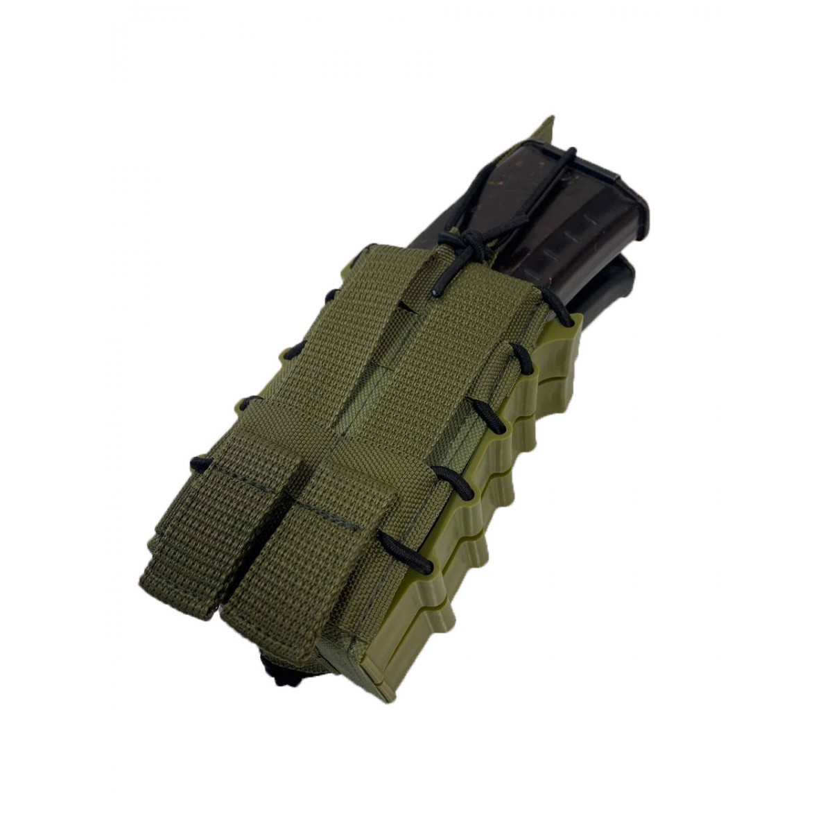 Двойной штурмовой подсумок для магазинов АК система Molle (Олива) МК пластиковые бока