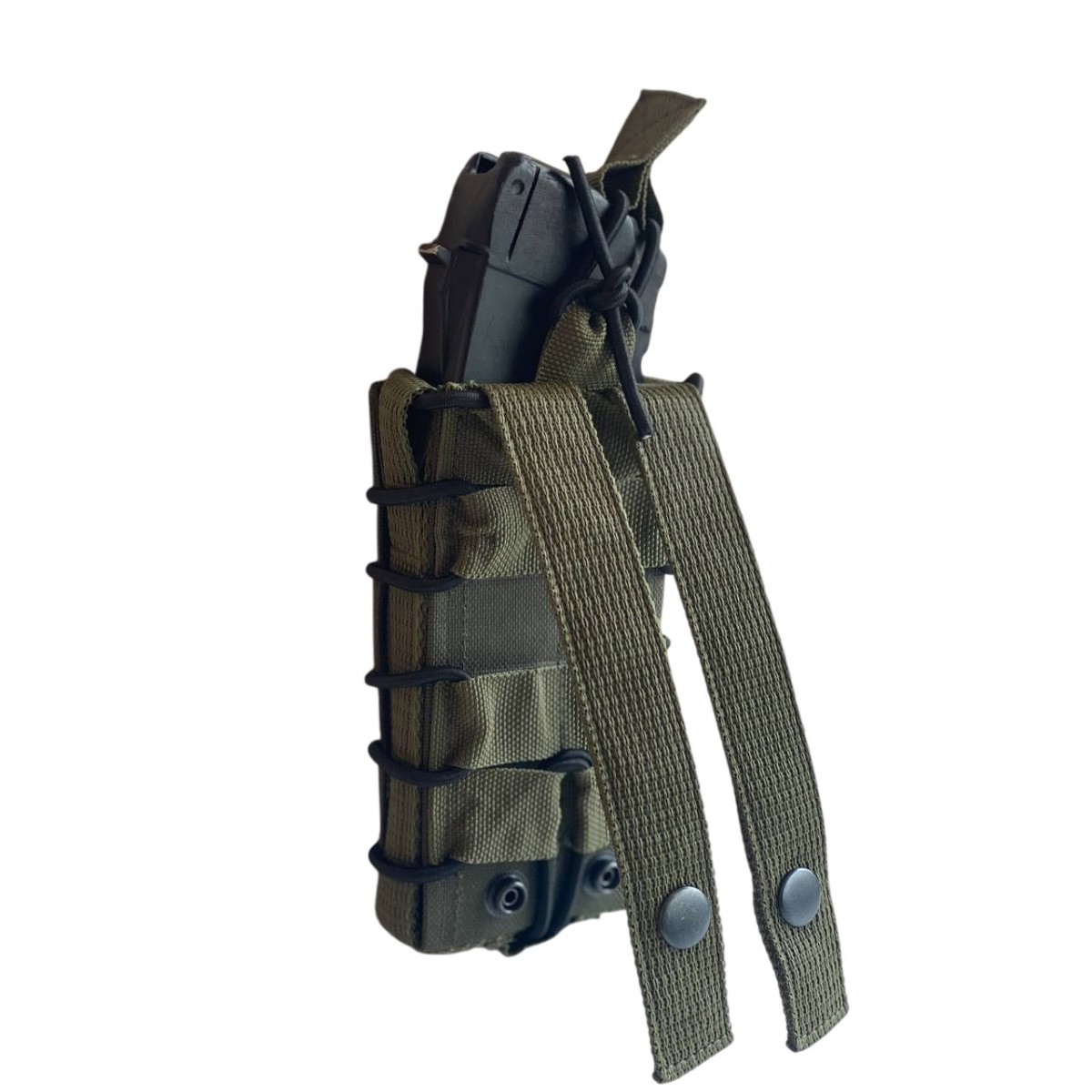 Одинарный подсумок для магазина АК изготовлен из качественных материалов и оснащен стандартным креплением MOLLE, усиленным кнопками, что позволяет использовать его с любыми серийными разгрузочными системами, тактическими поясами и бронежилетами. Магазин сверху фиксируется резинкой для быстрой перезарядки, с запасом длины для различных нужд.