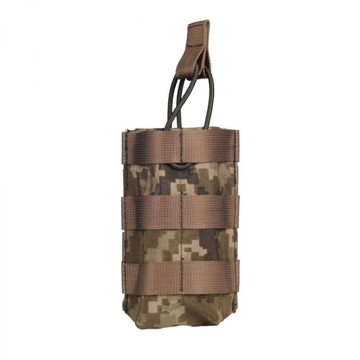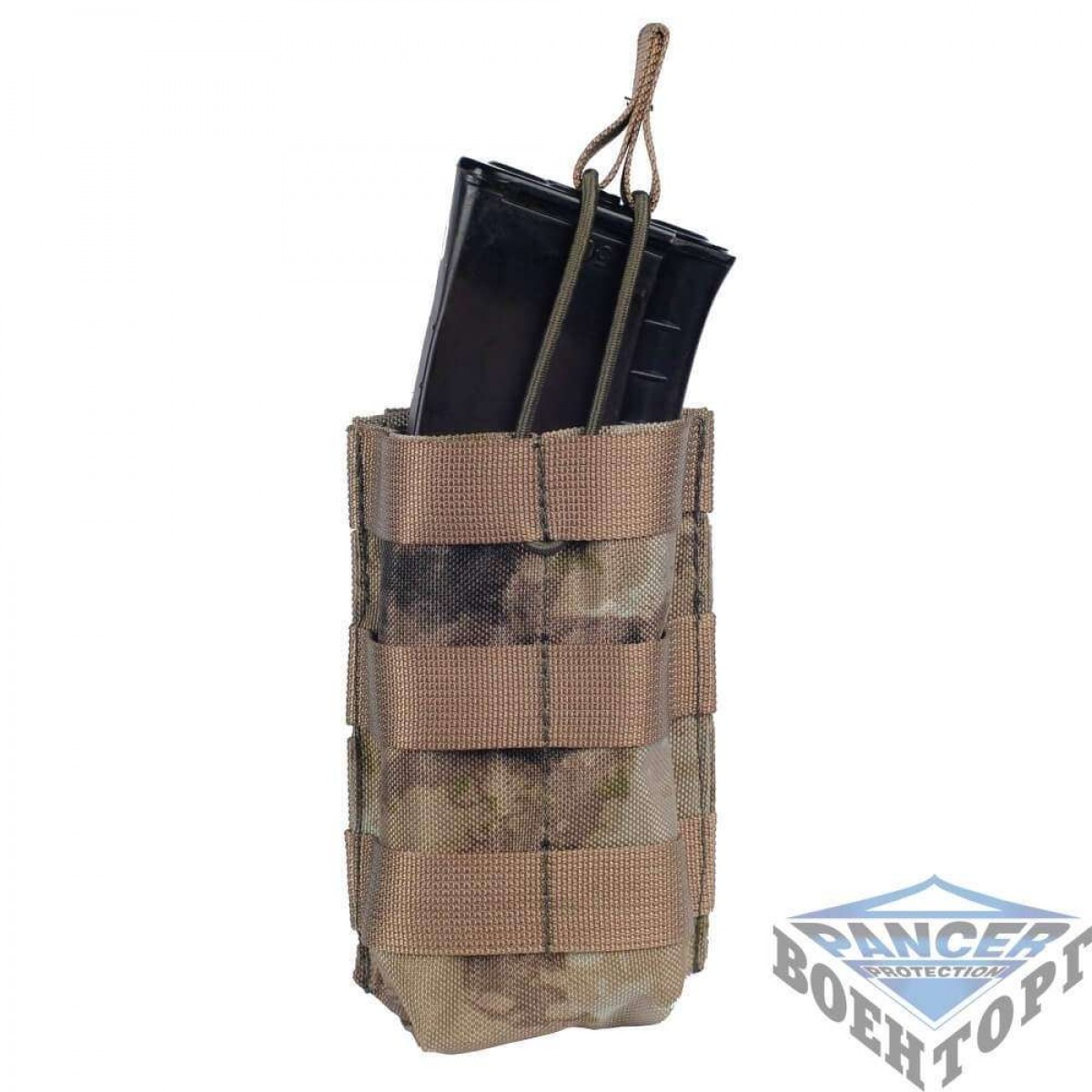 Подсумок АК открытый одинарный. Подсумок предназначен для переноски одного магазина АК-серии(47/74). При регулировке утяжки есть возможность использовать магазины других систем. За счет наличия строп MOLLE на внешней стороне подсумки могут соединяться в два ряда,каскадно. В нижней части подсумка вшит люверс для стока воды.