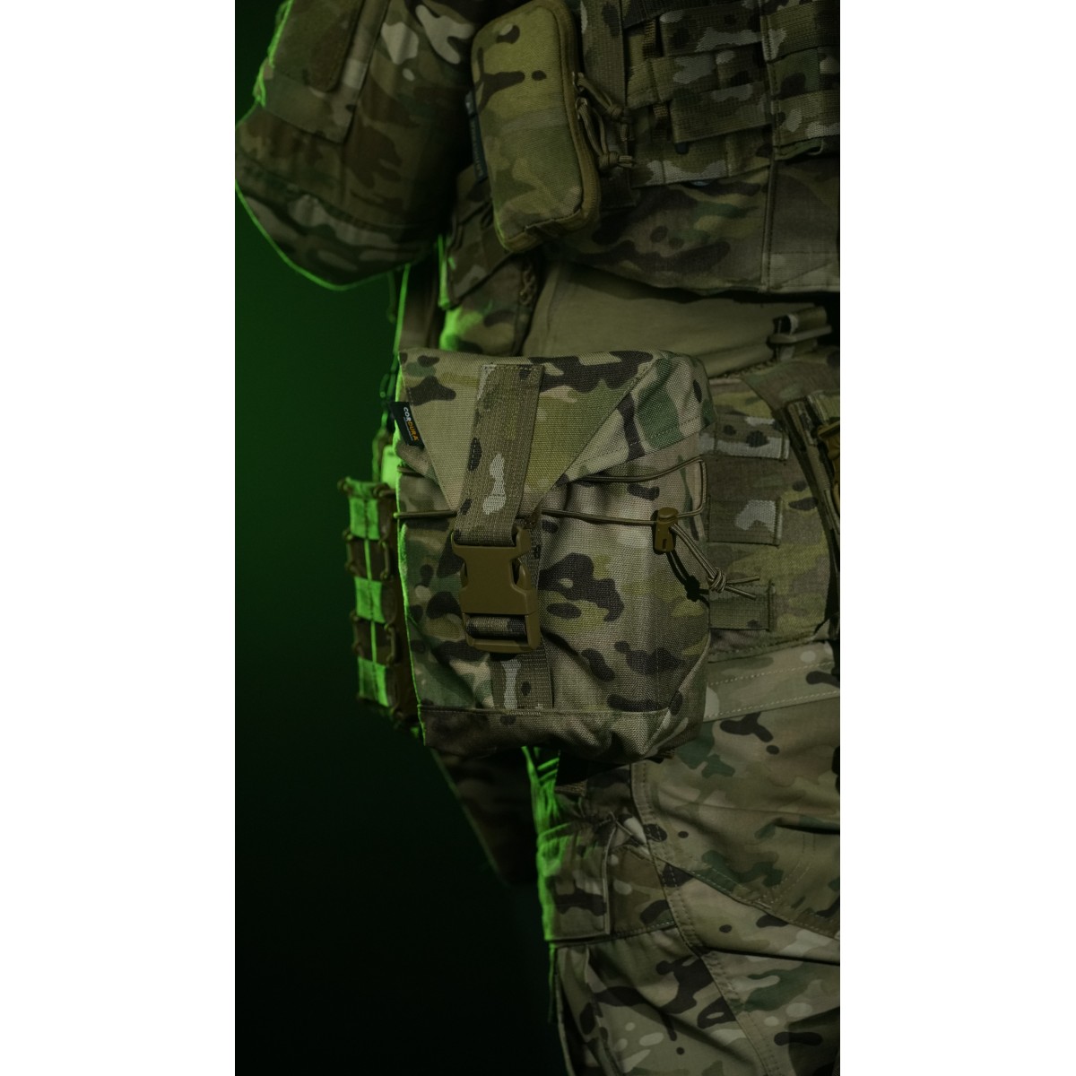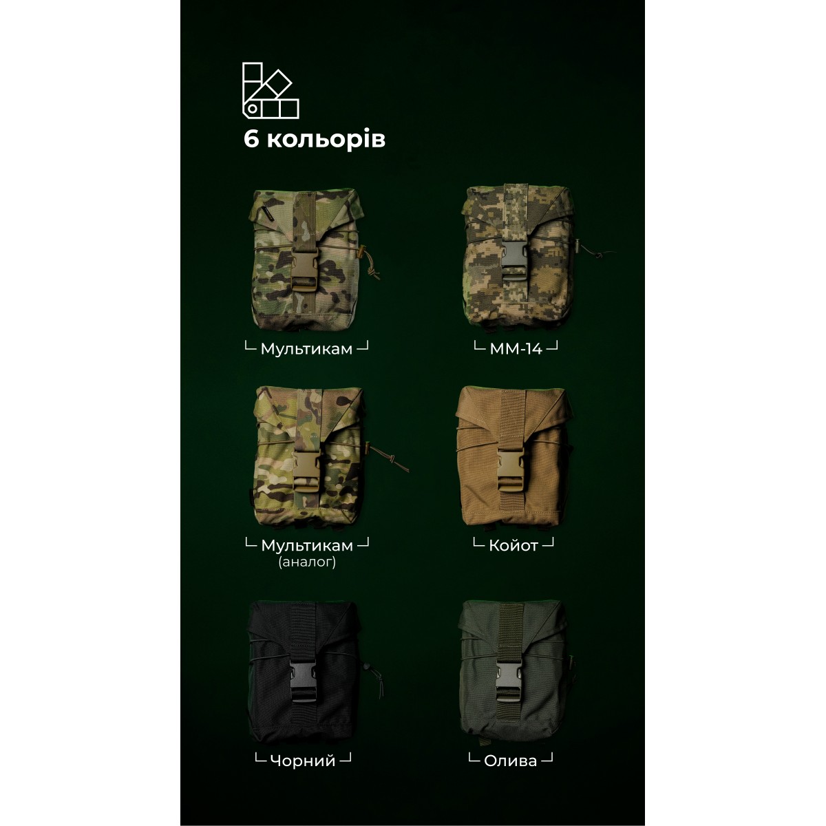 Подсумок «Стричник» создан для переноски короба на 200 патронов к пулемету М249. ✅ Ключевые преимущества Вмещает короб на 200 патронов калибра 5,56×45 мм Застегивается на фастекс и липучку Усиленные стропами боковины Прямоугольная форма позволяет быстро ставить короб любой стороной Может использоваться как утилитарный подсумок Вмещает 5 магазинов AR/AK Крепится на молли Стягивается шоккордом для компактности Отверстие с люверсом на дне для выхода влаги и мусора Выносливые материалы – Cordura 1000D Фурнитура WJ (Южная Корея) Описание товара Подсумок состоит из единственного отделения, которое закрывается клапаном с фастексом и велкро. Липучка под клапаном закрыта заглушкой на случай, если вы предпочитаете ограничиться только фастексом. Но независимо от того, закрыт ли подсумок только на липучку или на фастекс и на липучку, он раскрывается практически мгновенно. Благодаря более жесткой фиксации фастекса подсумок удобно закрывать после извлечения короба даже вслепую одной рукой – трезуб всегда находится в правильном положении и его не нужно искать. Изнутри на боковинах нашиты стропы, которые помогают удобнее укладывать короб, поддерживают форму подсумка и противостоят износу. Через фасад протянут шоккорд для уменьшения объема пустого или полузаполненного подсумка. Таким образом можно зафиксировать внутри содержимое, чтобы оно не смещалось и не выпадало. Подсумок имеет прямоугольную форму и не имеет скосов, поэтому короб можно размещать в нем в любом направлении и носить с удобной для вас стороны. Подсумок крепится на снаряжении на систему MOLLE. Занимает ширину 4 ячеек на вашем РПС или рюкзаке. В дне вырезано отверстие с металлическим люверсом, через которое выходит мелкий мусор, песок, влага. ❓ Часто задаваемые вопросы Адаптирован ли подсумок под скошенную форму короба? Нет, подсумок имеет прямоугольную форму, без скосов. Поэтому не нужно лишний раз сверять, нужной ли стороной вы ставите короб. Как ухаживать за подсумком? Рекомендуем стирать вручную или очищать мягкой щеткой с водой и безфосфатным порошком.Отзывы о Подсумок для короба под пулемет М249 "Стричник" (Мультикам) ТМ Баллистика