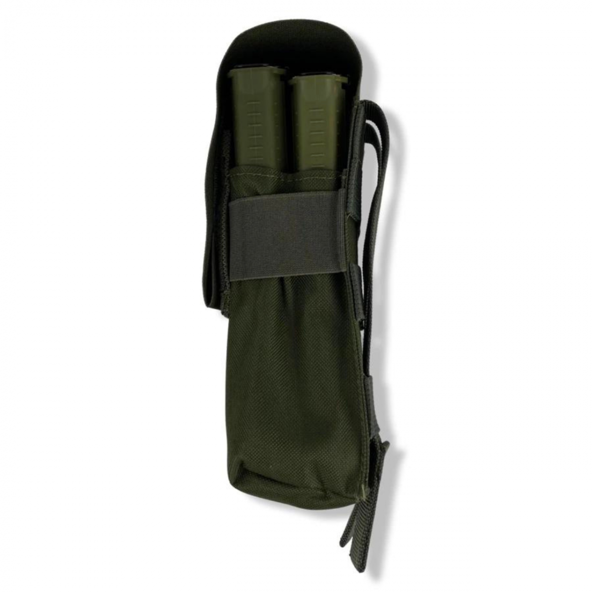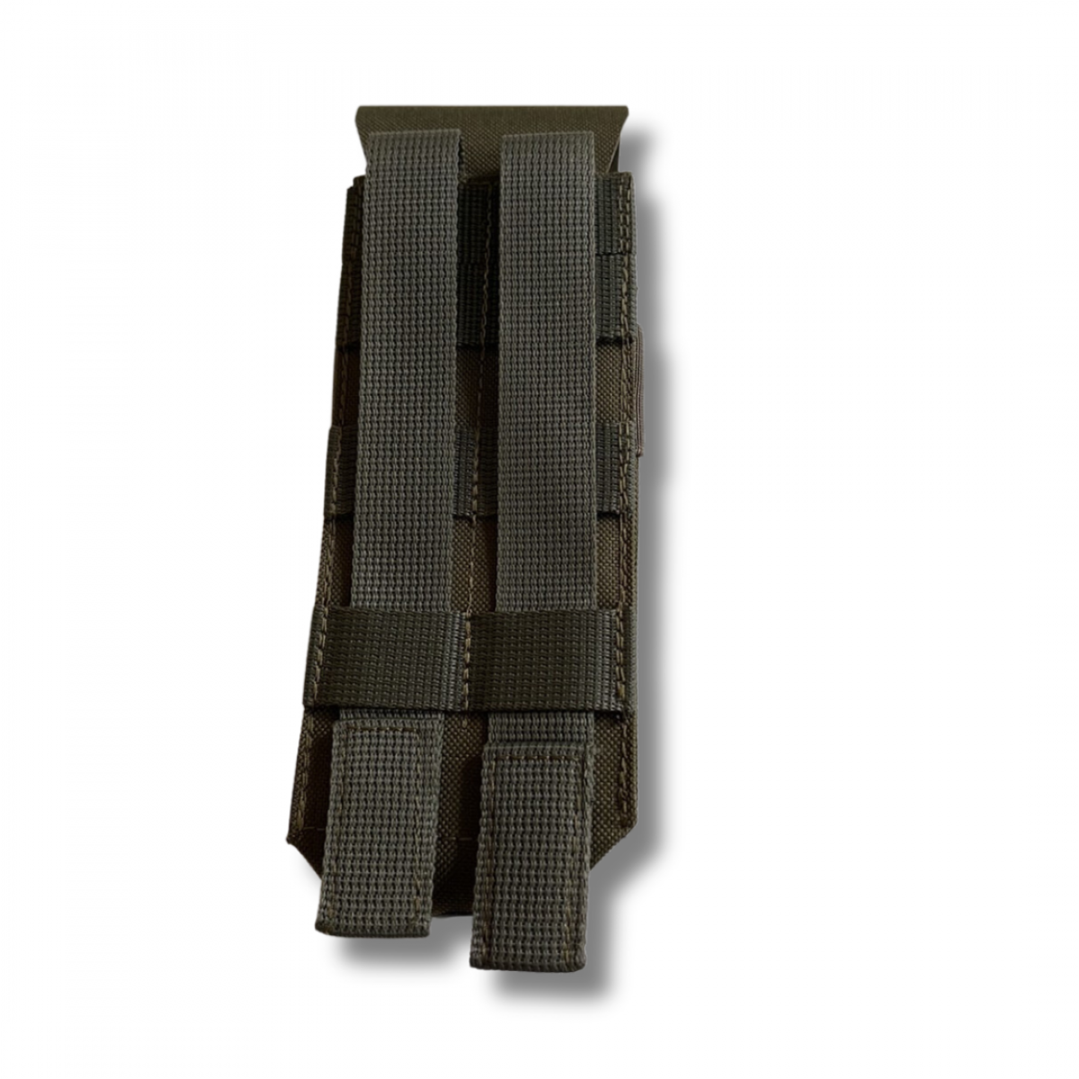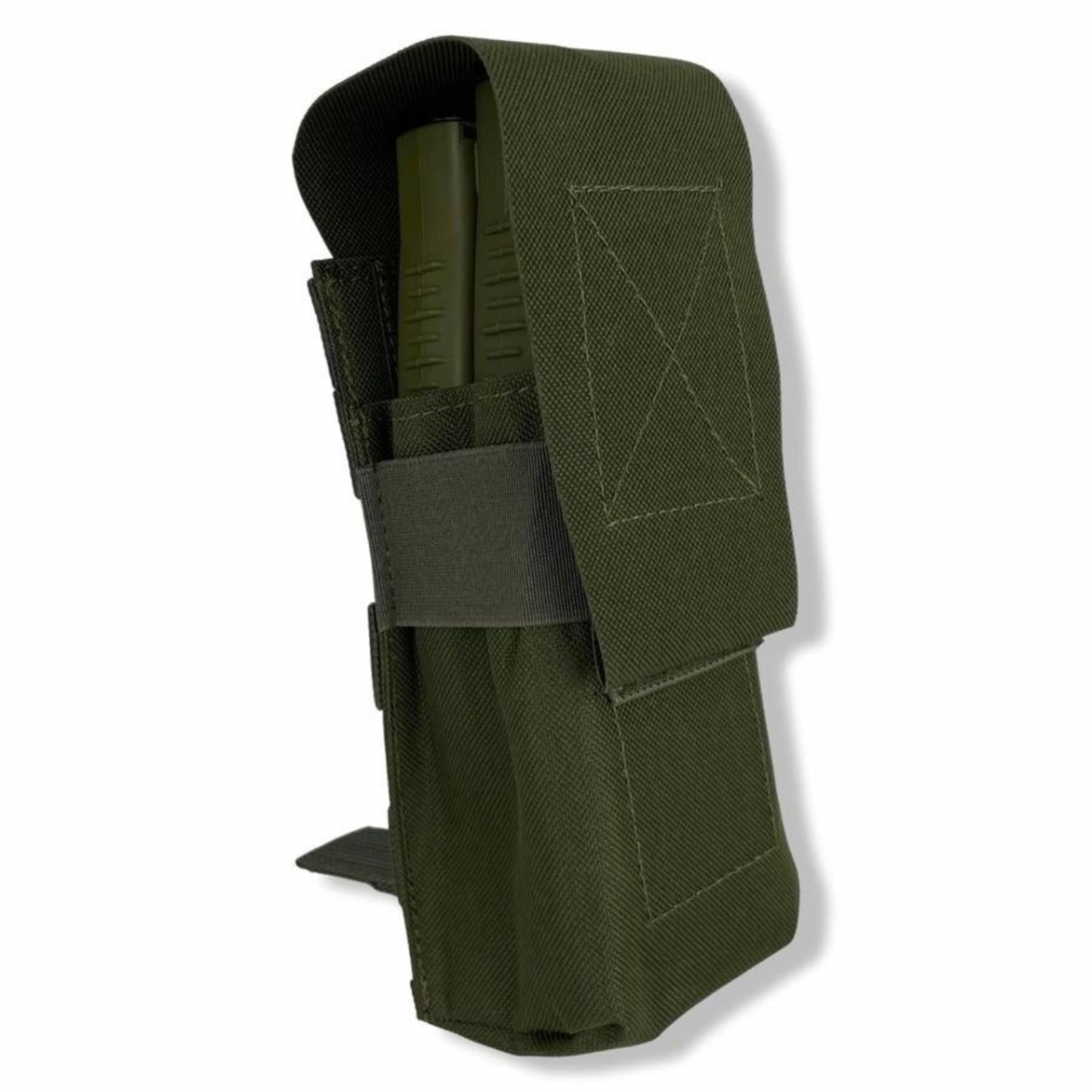 Подсумок также имеет полиамидные стропы системы MOLLE, позволяющие его надежно закрепить на вашем снаряжении. Эта система обеспечивает стабильную фиксацию подсумка и удобную доступность к нему. Кроме того, подсумок оснащен резинками по бокам, позволяющим дополнительно фиксировать магазины и избежать их непредсказуемого случайного выпадения.