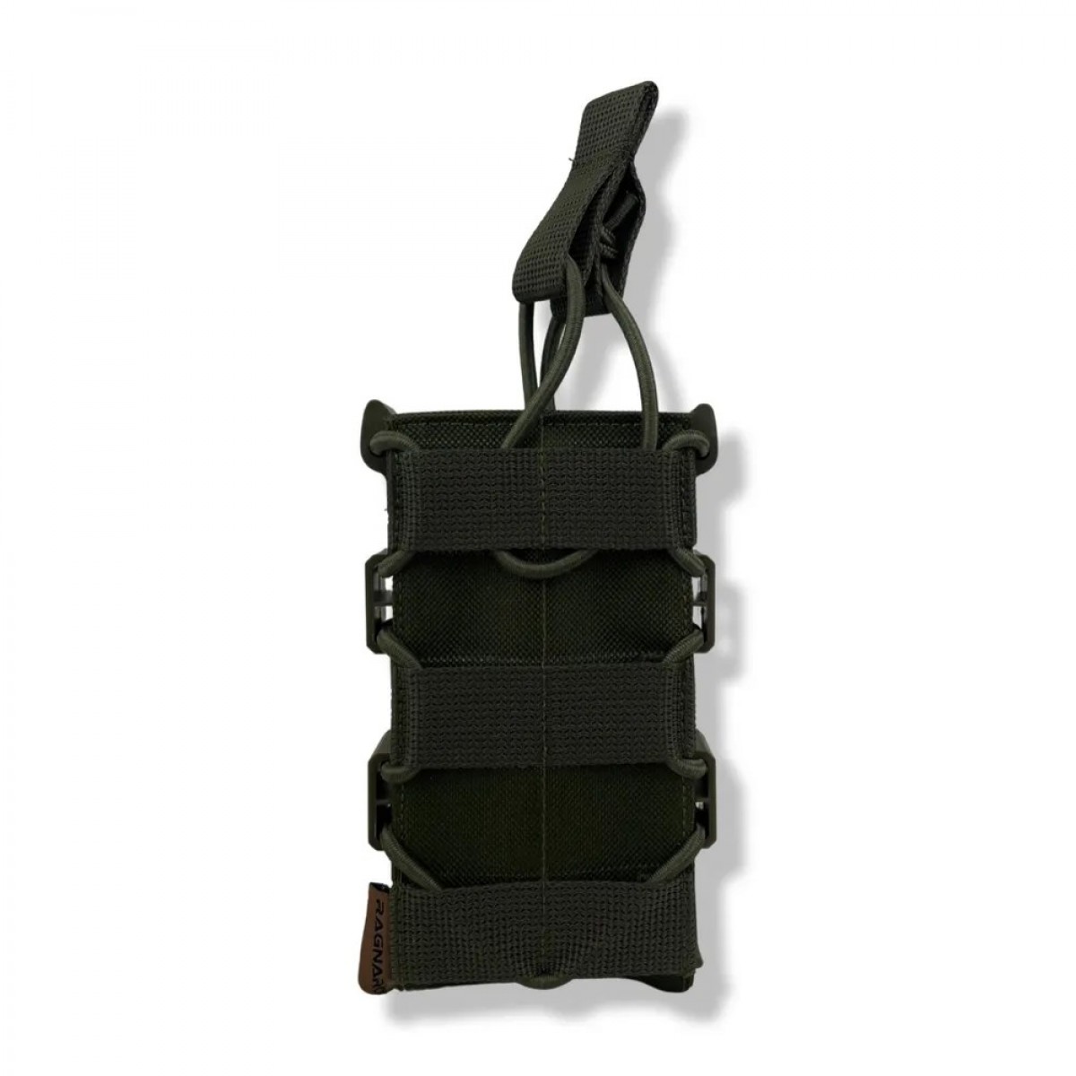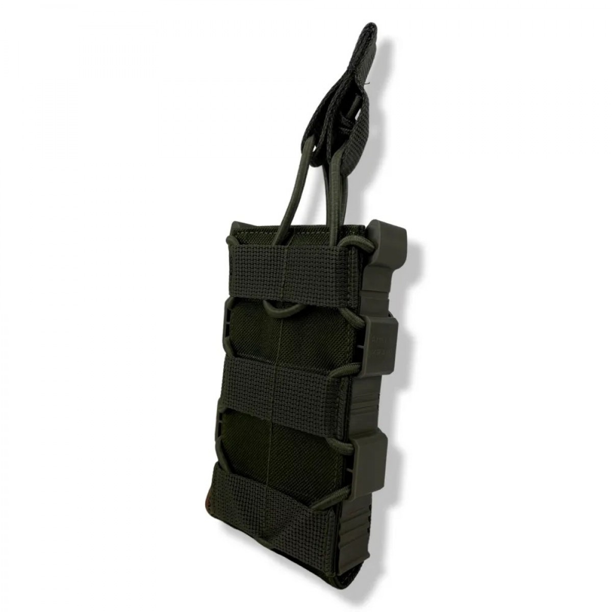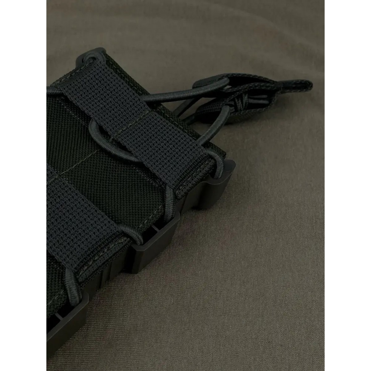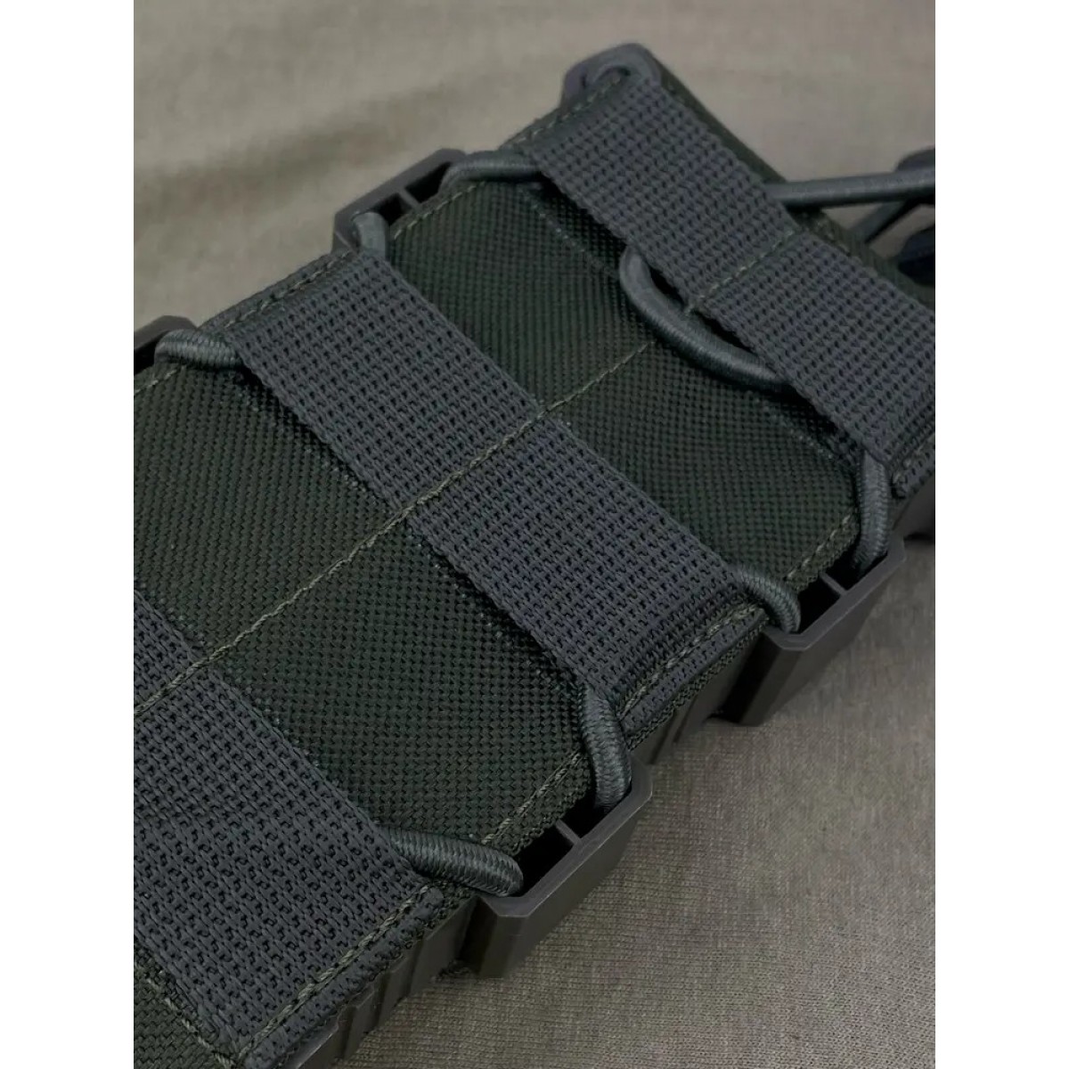 Для обеспечения надежности и фиксации магазина, используется качественная нейлоновая резинка, которая производится на заказ. Это позволяет подсумка точно подойти под размер магазина и обеспечить его безопасное и надежное хранение и переноску.