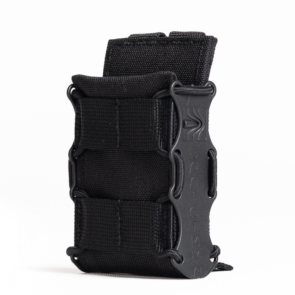 Одинарный подсумок «Колчан» в размере мини предназначен для ношения заполненных магазинов АК/AR. Он предоставляет оперативный доступ к боеприпасам, не занимает много места на снаряжении и при этом обеспечивает надежную фиксацию. Особенности подсумка Подсумок под магазины АК и AR Мини «Колчан» отличается от стандартной модели лишь укороченным размером, остальные его характеристики остались неизменными: Благодаря тому что в этом подсумке уменьшена высота, большая часть магазина остается открытой. Это позволяет легче ухватить его рукой, а соответственно, ускорить перезарядку. Задняя стенка выше передней, что позволяет быстро, почти вслепую вставлять и доставать магазин. Несмотря на небольшую зону контакта подсумка с магазином, боковые пластиковые стенки и плотная резинка обеспечивают ту же непревзойденную прочность удержания. Благодаря возможности отрегулировать натяжение резинки каждый стрелок может подобрать оптимальную для него жесткость фиксации магазина. Компактная форма позволяет разместить на снаряжении сразу несколько подсумков подряд, без пропуска ячеек MOLLE. Ведь пластиковые элементы не выступают за их границы и соседние подсумки не мешают друг другу. Стропы на задней части подсумка позволяют шнуровать его не только на систему MOLLE, но и на ремень. На передней панели также размещены ячейки, что позволяет прикрепить сверху другие колчаны для создания двойных подсумков. Технические характеристики Материал: Cordura 500D\1000D. Материал стенки: полиамид. Внутренняя часть: формованный пластик. Размеры: Ширина: 7,5 см. Толщина: 3 см. Высота передней стенки: 9 см. Высота задней стенки: 11 см.Отзывы о Подсумок под магазины АК/AR Мини "Колчан" (Черный)