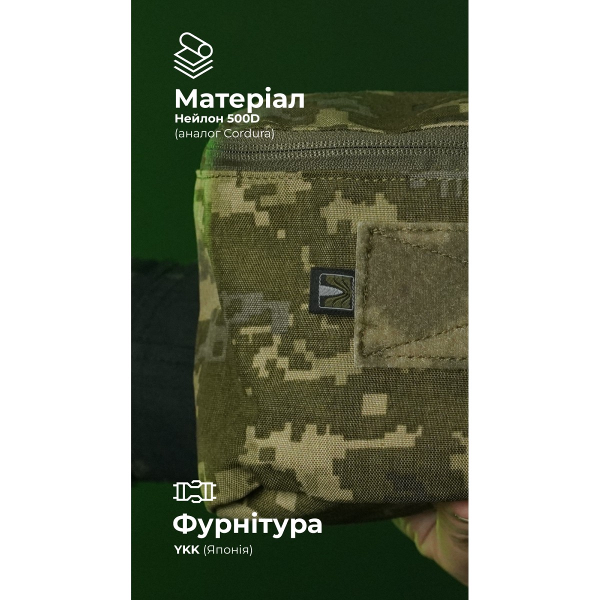 Вместительный и выносливый подсумок подходит для организованного хранения мелкого снаряжения, инвентаря, боеприпасов, провизии. ✅ Ключевые преимущества Объем 2,3 л Единственное отделение на молнии Крепится на велкро Совместим со штурмовым рюкзаком «Штормар» Боковая ручка для быстрого отрыва от липучки или переноска вне рюкзака Велкро-панель на фасаде Прочная ткань: нейлон 500D (аналог Cordura) Фурнитура YKK (Япония) Описание товара Благодаря максимально простой конструкции подсумок облегчает доступ к содержимому. А выносливые материалы, надежные швы и фурнитура обеспечивают стойкость к износу и повреждениям. Подсумок состоит из одного основного отделения. Оно закрывается на молнию с двумя бегунками. Крепится к снаряжению на 2 полоски велкро (по 24×5 см). Сбоку пришита ручка из стропы, которая облегчает отрыв подсумка от велкро-панели. Также она позволяет удобно переносить подсумок отдельно. Спереди подсумка помещена велкро-панель (15×5 см). Ткань с водоотталкивающей пропиткой обеспечивает базовую защиту содержимого от влаги. Внизу вырезано отверстие с металлическим люверсом, через которое может выходить лишняя влага и мелкий мусор. Внутренние швы обработаны тесьмой для большей выносливости. ❓ Часто задаваемые вопросы Какой объем имеет подсумок и что туда вмещается? Подсумок объемом 2,3 л легко вместит 7 магазинов на 30 патронов AK/AR или боекомплект россыпью, ручные гранаты. Также в нем можно хранить аккумуляторы, перчатки, набор инструментов, сухпай и т.д. Совместим ли подсумок с системой MOLLE? Нет, этот подсумок может крепиться только на велкро-панель. Как ухаживать за изделием? Рекомендуется ручная стирка или очистка мягкой щеткой с водой и бесфосфатным порошком.Отзывы о Утилитарный подсумок "Тайник" (26×15×6 см | Велкро | ММ14 "Пиксель") ТМ Баллистика