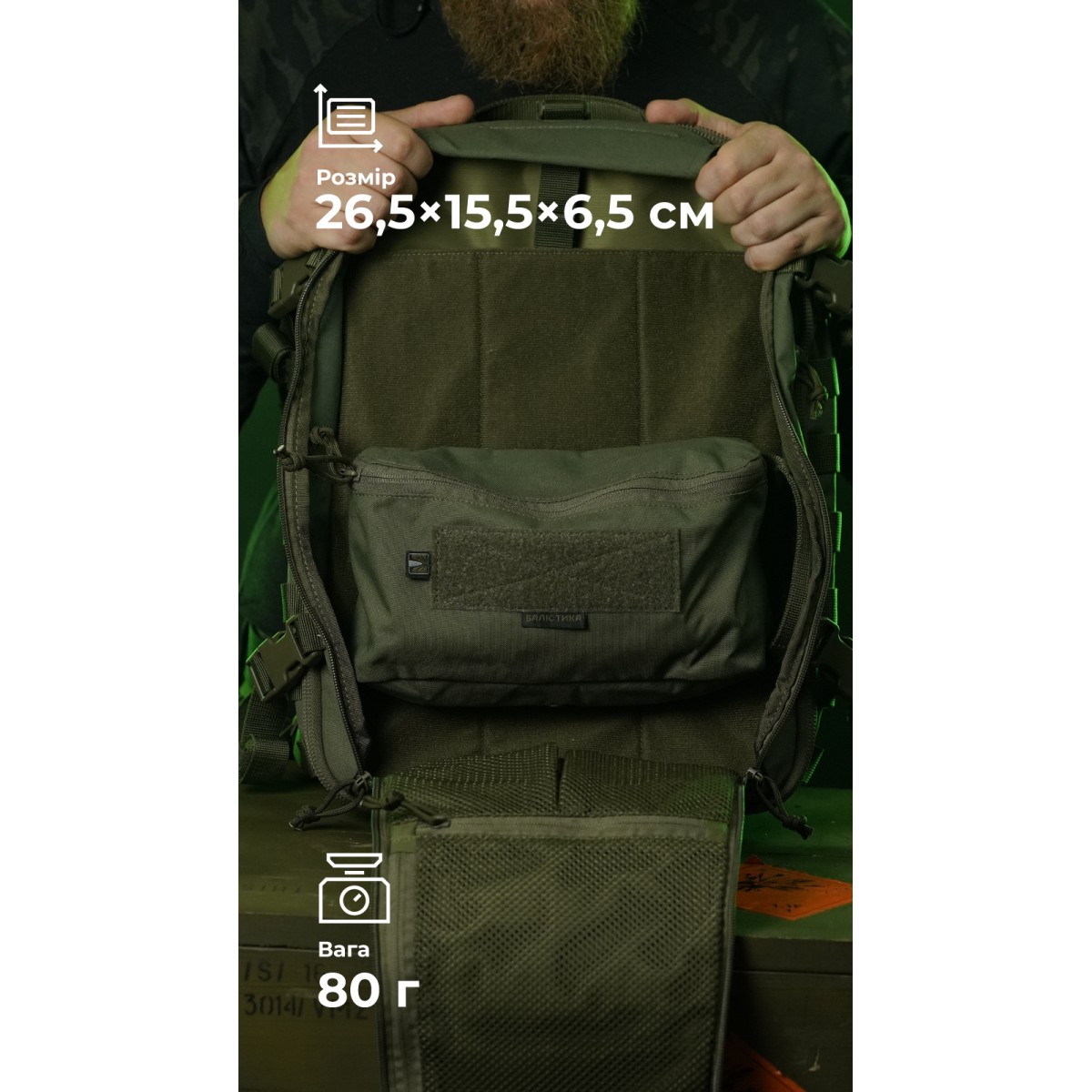 Описание Утилитарный подсумок "Тайник" (26×15×6 см | Велкро | Олива) ТМ Баллистика