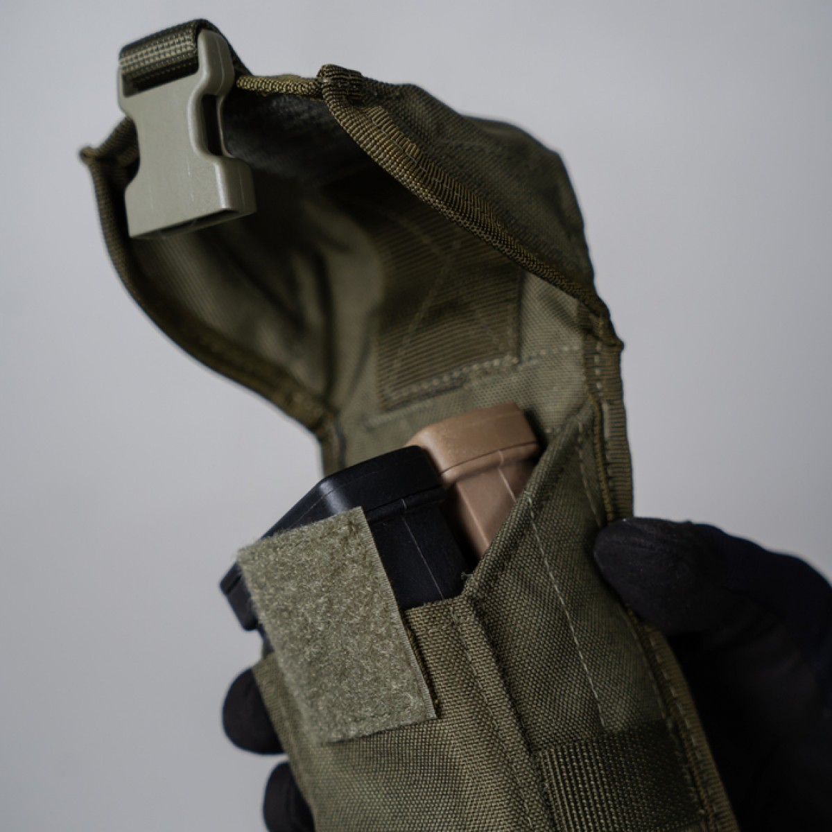 Одним из важнейших элементов снаряжения военнослужащих являются подсумки под магазины. Чем удобнее их носить и доставать, тем выше маневренность бойца. «Баллистика» разработала свой двойной подсумок закрытого типа под магазины АК/AR именно с такими функциями. Особенности закрытого подсумка под магазины А-30 А30 – двойной подсумок под коробчатые магазины АКМ, АК-74, AR-15, AR-10 и др. Функциональным и надежным это изделие делают следующие характеристики: Магазины не выпадают из подсумка благодаря прочной фиксации и крышке с фастексом. Защищает магазины автомата от пыли и грязи благодаря полностью закрытому внутреннему пространству. Дополнительный велкро-фиксатор на крышке обеспечивает быстрый доступ к содержимому и надежно закрепляет ее, даже если фастекс не замкнут. Утолщенные стропой стенки лучше держат форму, даже когда подсумок пустой. Ячейки системы MOLLE также усилены, благодаря чему лучше фиксируются, и имеют кнопку на конце для надежности. Боковые MOLLE на стенках подсумка добавлены для навешивания дополнительного снаряжения. На дне подсумка есть люверс для выхода влаги и песка. Подсумок отлично работает с двумя магазинами, содержащими патроны калибра.308 (7,62×51). Благодаря форме изделие можно использовать как длинный утилитарный подсумок закрытого типа. Технические характеристики Материал: Cordura 1000D. Материал стропы: полиамид. Фурнитура: Ammolit Plus. Размеры подсумка: 22×10×5 см. Вес: 160 г.Отзывы о Закрытый подсумок под магазины автомата А30 (Олива)