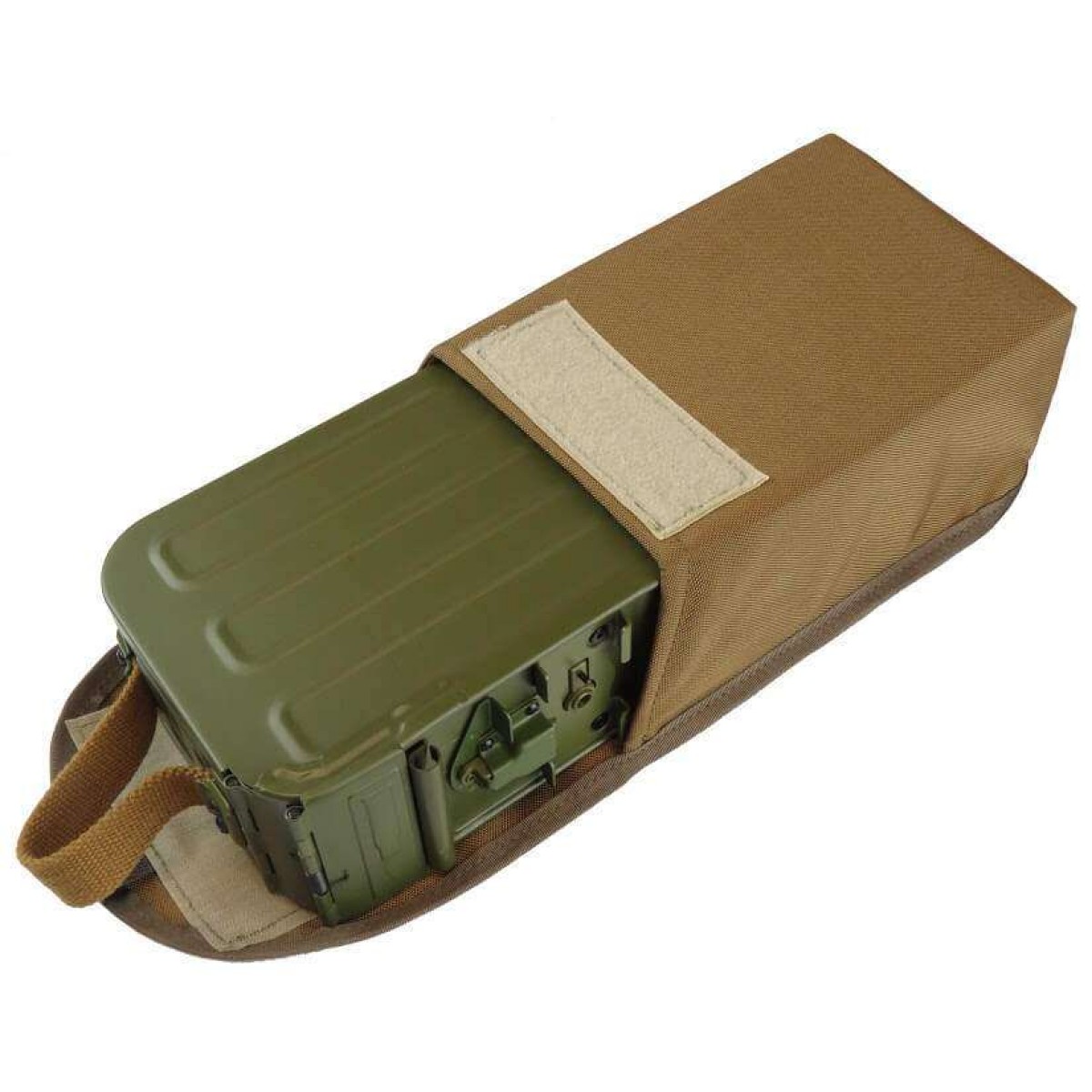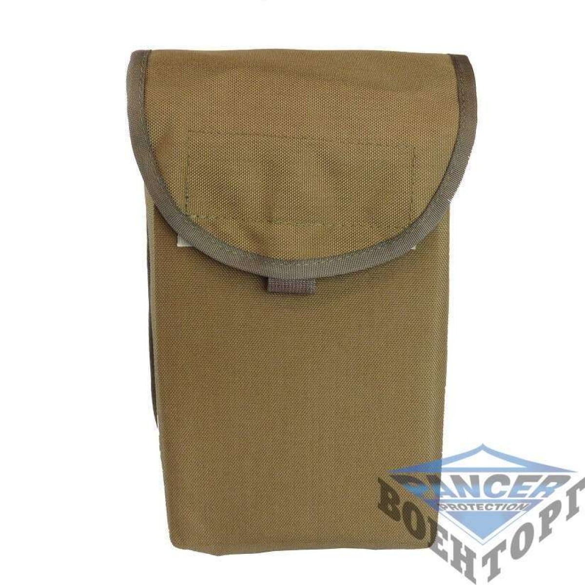 Подсумок предназначен для размещения и транспортировки 100-патронного пулеметного короба ПК/ПКМ. Корпус усилен пластиковыми вставками для удобства использования.Подсумок не деформируется,держит форму-удобно извлекать и вкладывать короб.Применена система быстрого извлечения короба за счет вытяжной шлейки.