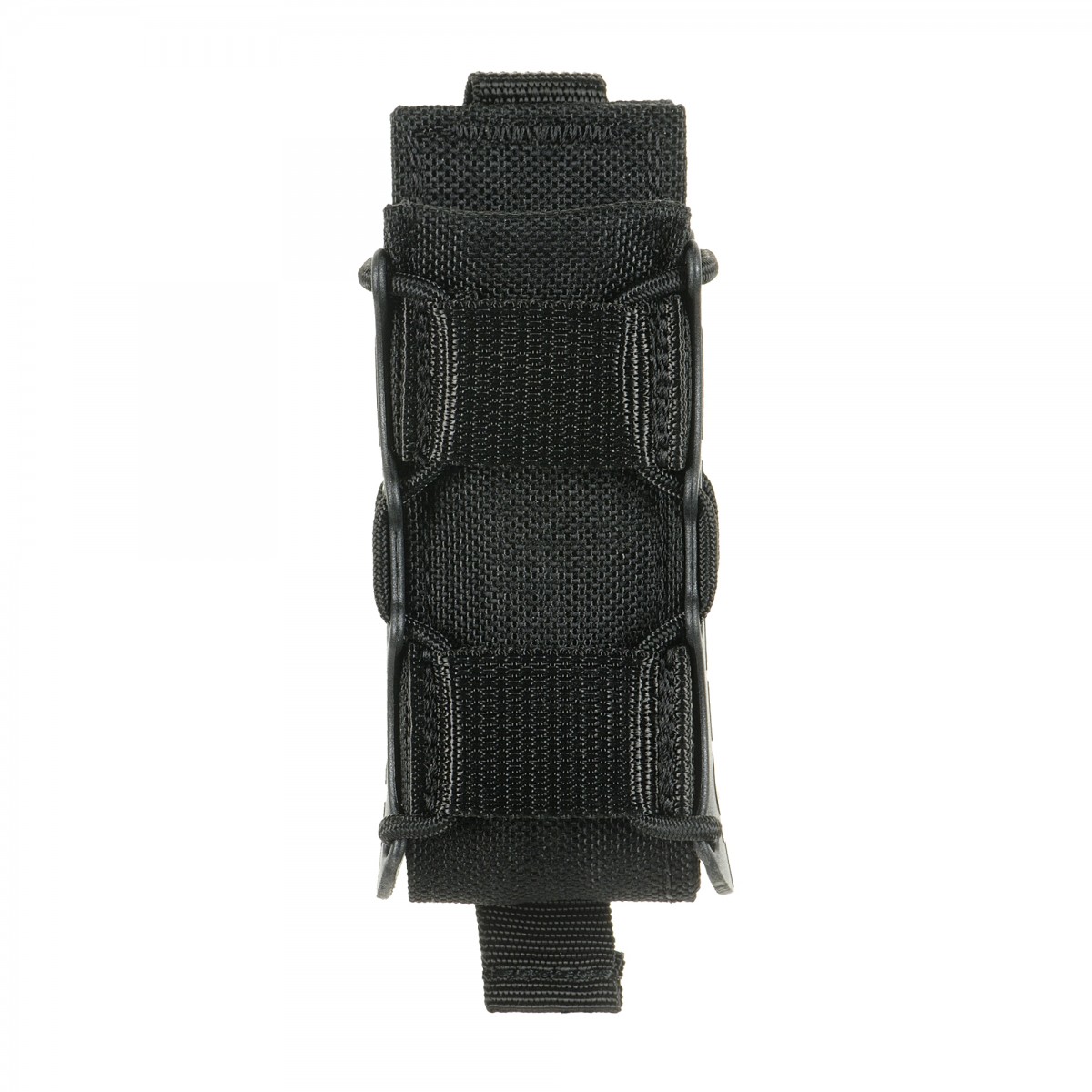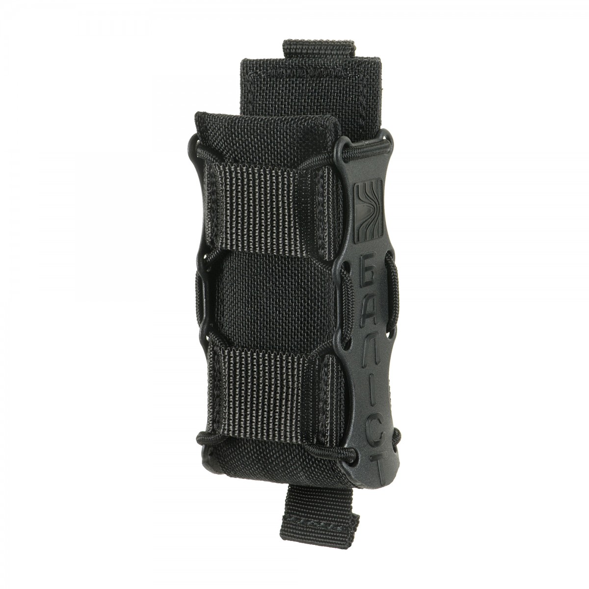 Подсумок «Колчан» в данной модификации предназначен для ношения заполненного магазина от Глок-17, Форт-12/-17/-21 и других подобного размера. Изделие выполнено из высококачественного пластика, Cordura 1000D, а также полиамидной стропы. Все эти материалы являются прочными и долговечными, поэтому наш подсумок не порвется и не протрется даже через год интенсивного использования. Особенности изделия Продуманная до мелочей конструкция обеспечит надежную фиксацию магазина и удобную эксплуатацию подсумка: Открытый доступ к магазину позволяет выполнять перезарядку как можно быстрее. Жесткие боковые стенки изготовлены из высококачественного пластика, который предотвращает их деформацию и прогиб под давлением магазина. Эти же стенки и плотная резинка не дают содержимому выпасть при нагрузке и во время движения, поэтому «Колчан» даже не требует дополнительной фиксации. Благодаря возможности развязать резинку и отрегулировать ее натяжение каждый стрелок может подобрать оптимальную для него жесткость фиксации магазина. Подсумки имеют меньшие габариты по сравнению с аналогами, представленными на рынке, что обеспечивает посадку нескольких изделий рядом, чтобы те не мешали друг другу. На передней панели подсумка размещены две ячейки MOLLE, что позволяет прикрепить к нему другие небольшие подсумки или инвентарь. Задняя стенка выше передней, что позволяет быстро, почти вслепую вставлять магазин и, собственно, размещать колчаны друг на друге для создания двойных подсумков. Технические характеристики Материал: Cordura 500D\1000D. Материал стенки: полиамид. Внутренняя часть: формованный пластик. Размеры подсумка: Ширина: 4 см. Толщина: 3 см. Высота передней стенки: 9 см. Высота задней стенки: 11 см.Основные характеристики Подсумок под магазин пистолета "Колчан" (Черный)