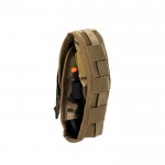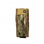 Воинам на передовой лучше всего иметь несколько турникетов – желательно минимум по одному возле верхних и нижних конечностей. Советуем среди прочих иметь хотя бы один закрытый подсумок для кровоостанавливающего жгута на случай неблагоприятных погодных условий. Наш подсумок разработан таким образом, чтобы предоставлять быстрый доступ к турникету и при этом значительно уменьшать влияние на него неблагоприятных факторов окружающей среды. Особенности изделия В отличие от первого поколения наших турникетных подсумков эта модель почти полностью закрывает турникет и в то же время благодаря велкро-застежке не требует особых усилий для его доставания в экстренных условиях. Подсумок открывается дважды: первый раз клапаном с «язычком», который фиксируется на липучку и прячется в эластичный кармашек; второй – еще одним клапаном с липучкой. Это звучит сложно, но на самом деле конструкция очень простая и удобная. Внутри на двух краях зеркально помещены два кармана, которые позволяют уложить турникет в развернутом виде. При извлечении он сразу готов к использованию – если был правильно сложен. На одном из карманов нашиты резинки-фиксаторы для маркера и небольших ножниц. Вертикально крепится на систему MOLLE одной стропой. Есть возможность повесить горизонтально на ремень до 50 мм, продев его через ячейки MOLLE. Поэтому последняя ячейка двойная – чтобы было куда спрятать хлястик. Технические характеристики Материал: Cordura 1000D. Стропа: полиамид, 2,5; 5 см. Липучка: Velcro. Размеры пустого подсумка: 18×7,5×2,5 см. Длина подсумка в развернутом виде: 47 см. Вес: 120 г.Основные характеристики Подсумок под турникет закрытого типа (Мультикам)