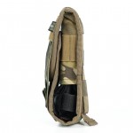 Воинам на передовой лучше всего иметь несколько турникетов – желательно минимум по одному возле верхних и нижних конечностей. Советуем среди прочих иметь хотя бы один закрытый подсумок для кровоостанавливающего жгута на случай неблагоприятных погодных условий. Наш подсумок разработан таким образом, чтобы предоставлять быстрый доступ к турникету и при этом значительно уменьшать влияние на него неблагоприятных факторов окружающей среды. Особенности изделия В отличие от первого поколения наших турникетных подсумков эта модель почти полностью закрывает турникет и в то же время благодаря велкро-застежке не требует особых усилий для его доставания в экстренных условиях. Подсумок открывается дважды: первый раз клапаном с «язычком», который фиксируется на липучку и прячется в эластичный кармашек; второй – еще одним клапаном с липучкой. Это звучит сложно, но на самом деле конструкция очень простая и удобная. Внутри на двух краях зеркально помещены два кармана, которые позволяют уложить турникет в развернутом виде. При извлечении он сразу готов к использованию – если был правильно сложен. На одном из карманов нашиты резинки-фиксаторы для маркера и небольших ножниц. Вертикально крепится на систему MOLLE одной стропой. Есть возможность повесить горизонтально на ремень до 50 мм, продев его через ячейки MOLLE. Поэтому последняя ячейка двойная – чтобы было куда спрятать хлястик. Технические характеристики Материал: Cordura 1000D. Стропа: полиамид, 2,5; 5 см. Липучка: Velcro. Размеры пустого подсумка: 18×7,5×2,5 см. Длина подсумка в развернутом виде: 47 см. Вес: 120 г.Основные характеристики Подсумок под турникет закрытого типа (Мультикам неоригинальный)