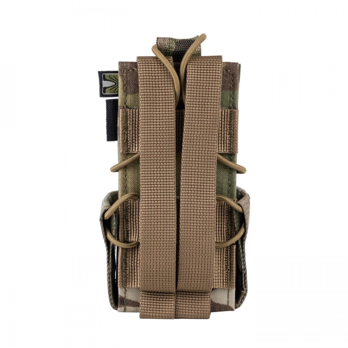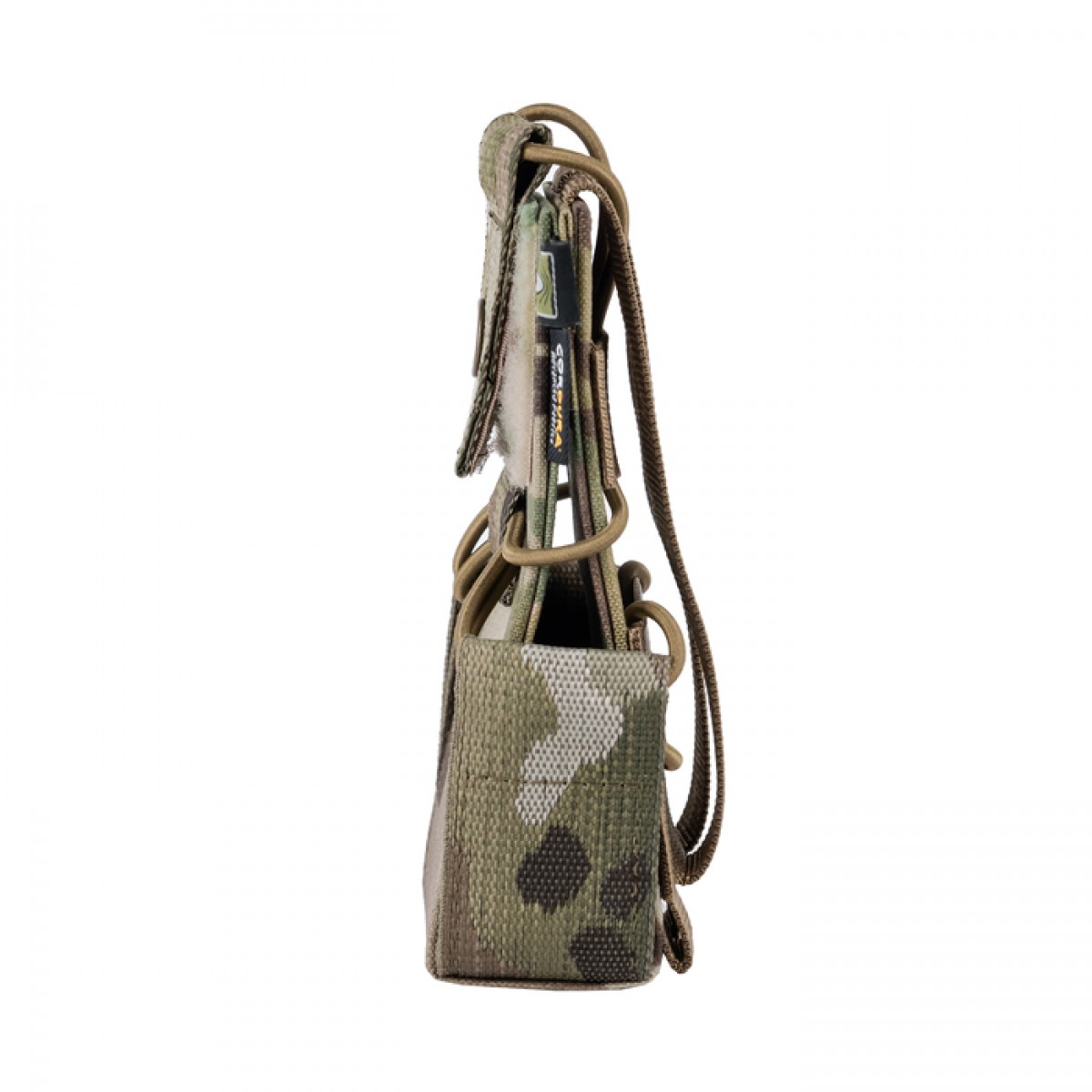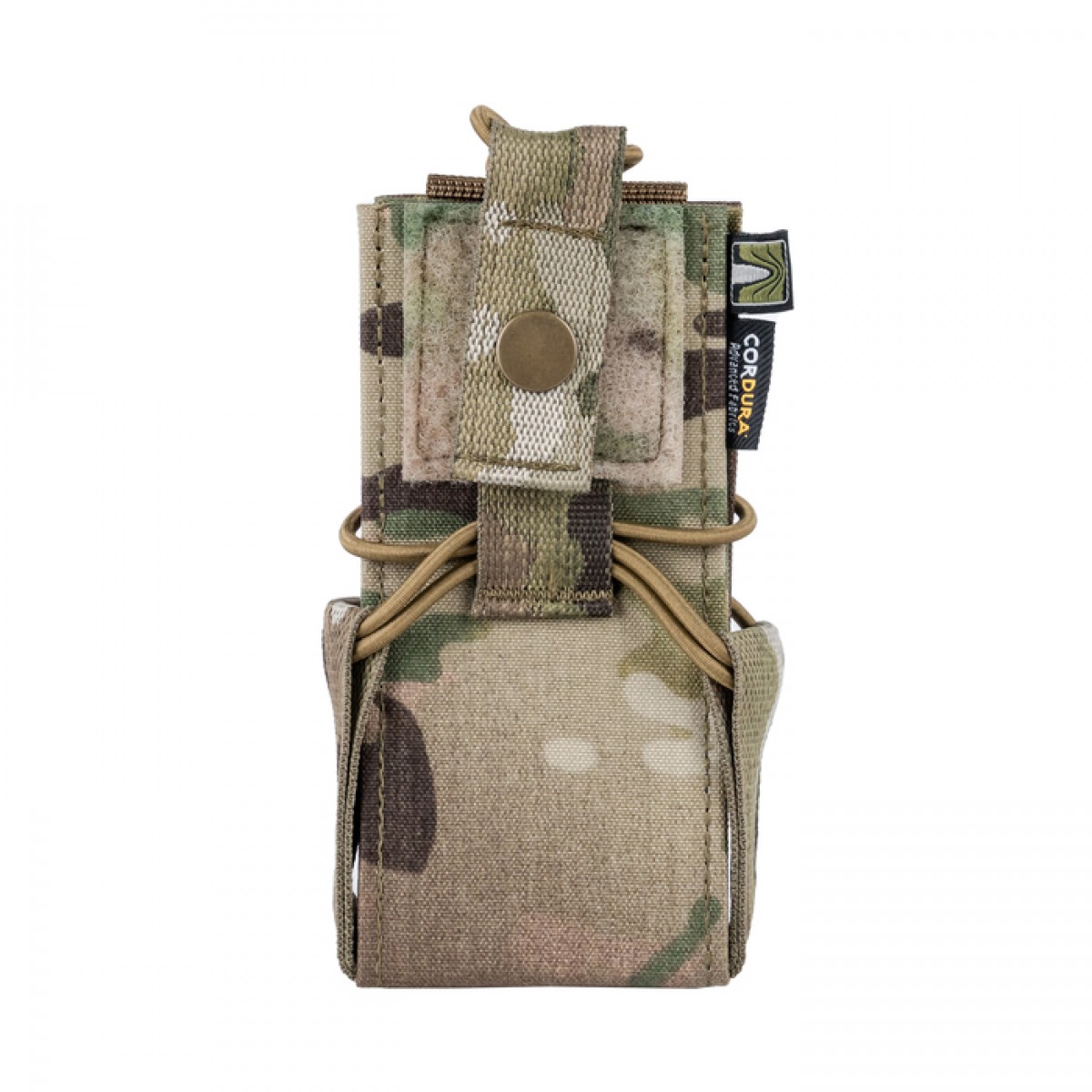 Данный подсумок разработан для удобного размещения портативной радиостанции. Подвижное крепление обеспечивает достаточную гибкость в подгонке изделия к рациям различных брендов. А полуоткрытая конструкция позволяет оперативно настраивать устройство без необходимости доставать его из подсумка. Особенности изделия Подсумок учитывает параметры различных средств радиосвязи и предоставляет необходимую функциональность: Передняя и задняя стенки и короткие боковины соединены эластичным шнурком, сверху изделие закрывается узкой стропой на кнопку и велкро. Такой дизайн обеспечивает доступ к основным органам управления радиостанции (в частности переключателей каналов и звука), а также способствует ее плотной посадке. Кнопка РТТ и микрофон также остаются открытыми, что позволяет использовать устройство без гарнитуры при закреплении подсумка на плече. Также элементы подсумка не мешают использовать выносную PTT. Благодаря этому повышается вариативность использования изделия в различных условиях. Благодаря резинке и щелям между стенками подсумок адаптируется под габариты практически любых моделей распространенных радиостанций, таких как Motorola, Baofeng UV 5R, Baofeng UV 82 Kenwood К2АТ, К4АТ, TH-F5 и радиостанций типа Walkie-Talkie. Крепится на две стропы MOLLE. Технические характеристики Материал: Cordura 500D. Стропы: нейлон, полиамидная ременная лента. Размер: 14×7×4 см. Вес: 90 г. Назначение: для радиостанции.Отзывы о Підсумок під рацію ТМ Балістика (Мультикам)