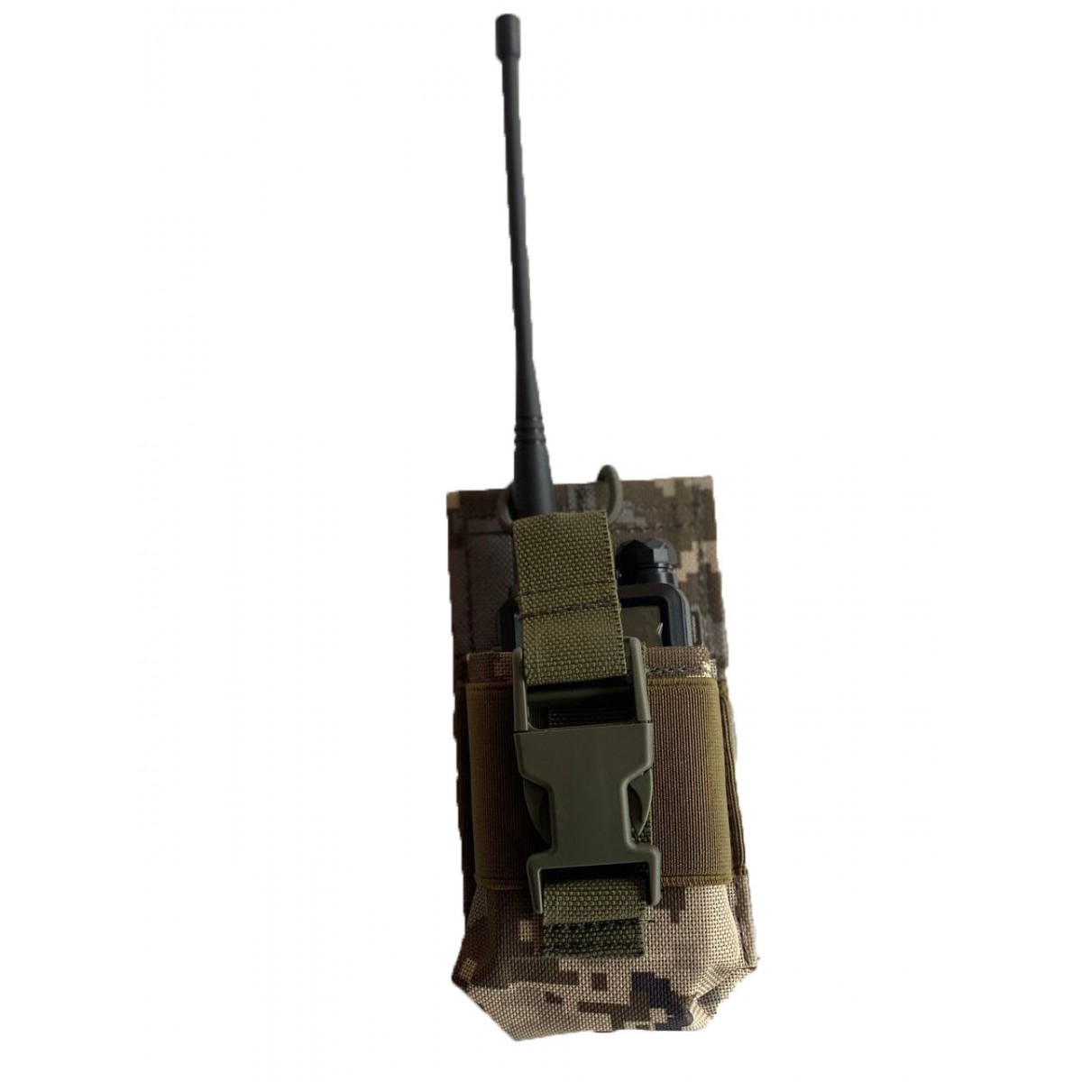 - рация в подсумке фиксируется двумя способами: корпус по бокам фиксируется широкой резинкой, а в верхней части - с помощью усиленной резинки и фастекса, что делает невозможным случайное открытие или выпадение;