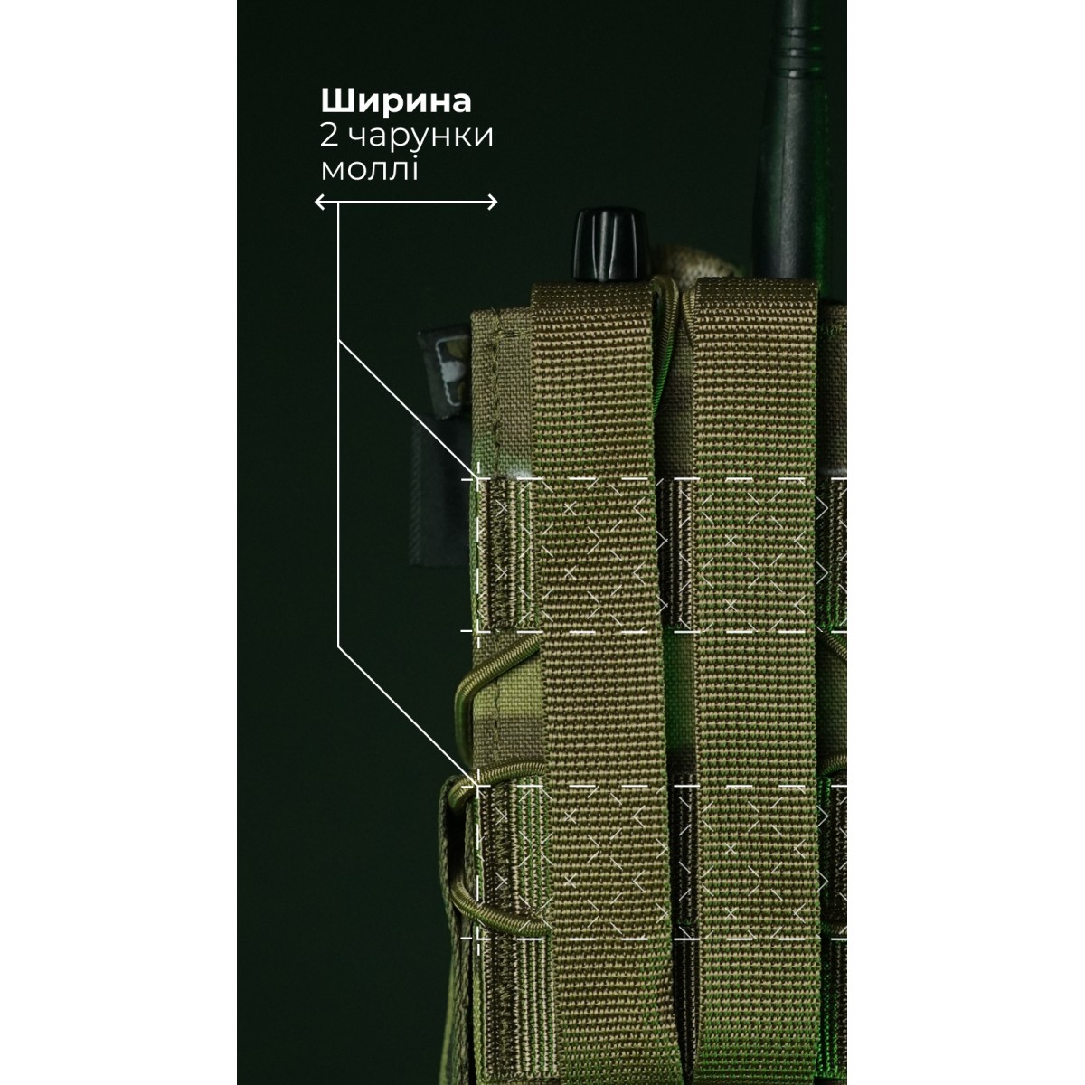 «Вестун» разработан для удобного размещения портативной радиостанции и может адаптироваться под популярные модели разных брендов. ✅ Ключевые преимущества Совместим с радиостанциями Motorola, Baofeng, Kenwood, Walkie-Talkie Приспосабливается к габаритам устройства Есть доступ к основным кнопкам без необходимости доставать рацию из подсумка или крепить гарнитуру Пластиковые вставки поддерживают устойчивую форму С фастексом рация надежно удерживается внутри Легкий и компактный, занимает на снаряжении ширину двух ячеек молли Выносливые материалы – Cordura 1000D, полиамидная стропа – и прочная фурнитура WJ (Южная Корея) Описание товара Универсальный адаптивный подсумок упростит работу с рацией и не даст ей выпасть во время активности. В этой генерации подсумок получил фастекс вместо кнопки и велкро. Это сделало фиксацию рации еще более стабильной. Полуоткрытая, подвижная конструкция обеспечивает свободный доступ к основным органам управления радиостанции (в том числе переключателям каналов и звуку). ✔️ Передняя, задняя стенки и дно содержат внутри пластиковые вставки, которые придают необходимую жесткость и одновременно гибкость. ✔️ Короткие боковины выполнены из стропы и пришиты только ко дну подсумка, что позволяет ему подстраиваться под разную ширину радиостанций. ✔️ В петли и ячейки молли вплетен шоккорд, который соединяет все элементы и обеспечивает плотное и эластичное закрепление. ✔️ Сверху подсумок замыкается фастексом на том же шоккорде, что позволяет регулировать высоту под конкретную рацию. Кнопка РТТ и микрофон остаются открытыми, что позволяет использовать устройство без гарнитуры при закреплении подсумка на плече. Элементы подсумка также не мешают использовать выносную PTT. Следовательно, можно беспрепятственно управлять рацией даже во время движения, не снимая подсумок с плеча. Подходит практически к любым моделям распространенных радиостанций, например: ✔️ Motorola 4400, 4600, 4800; ✔️ Baofeng UV 5R, UV 9R, UV 82; ✔️ Kenwood К2АТ, К4АТ, TH-F5; ✔️ компактные модели формата Walkie-Talkie. Крепится к снаряжению на две стропы молли. ❓ Часто задаваемые вопросы Можно ли заменить шоккорд на более длинный? Да. Если ваша рация достаточно массивна и вам не хватает длины шоккорда для корректного закрепления, вы можете установить другой. Можно ли стирать подсумок в стиральной машине? Нет, это может растянуть шоккорд, стропу и повредить фурнитуру. Лучше очищать подсумок мягкой щеткой с водой и бесфосфатным порошком. Можно ли использовать подсумок «Вестун» для переноски магазина на 30 патронов АК/AR? Да, при необходимости это возможно. Подсумок достаточно прочен и гибок, чтобы вместить магазин.Отзывы о Подсумок под рацию "Вестун" GEN 2 (Фастекс | Мультикам) ТМ Баллистика