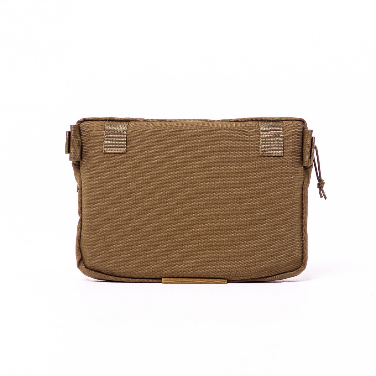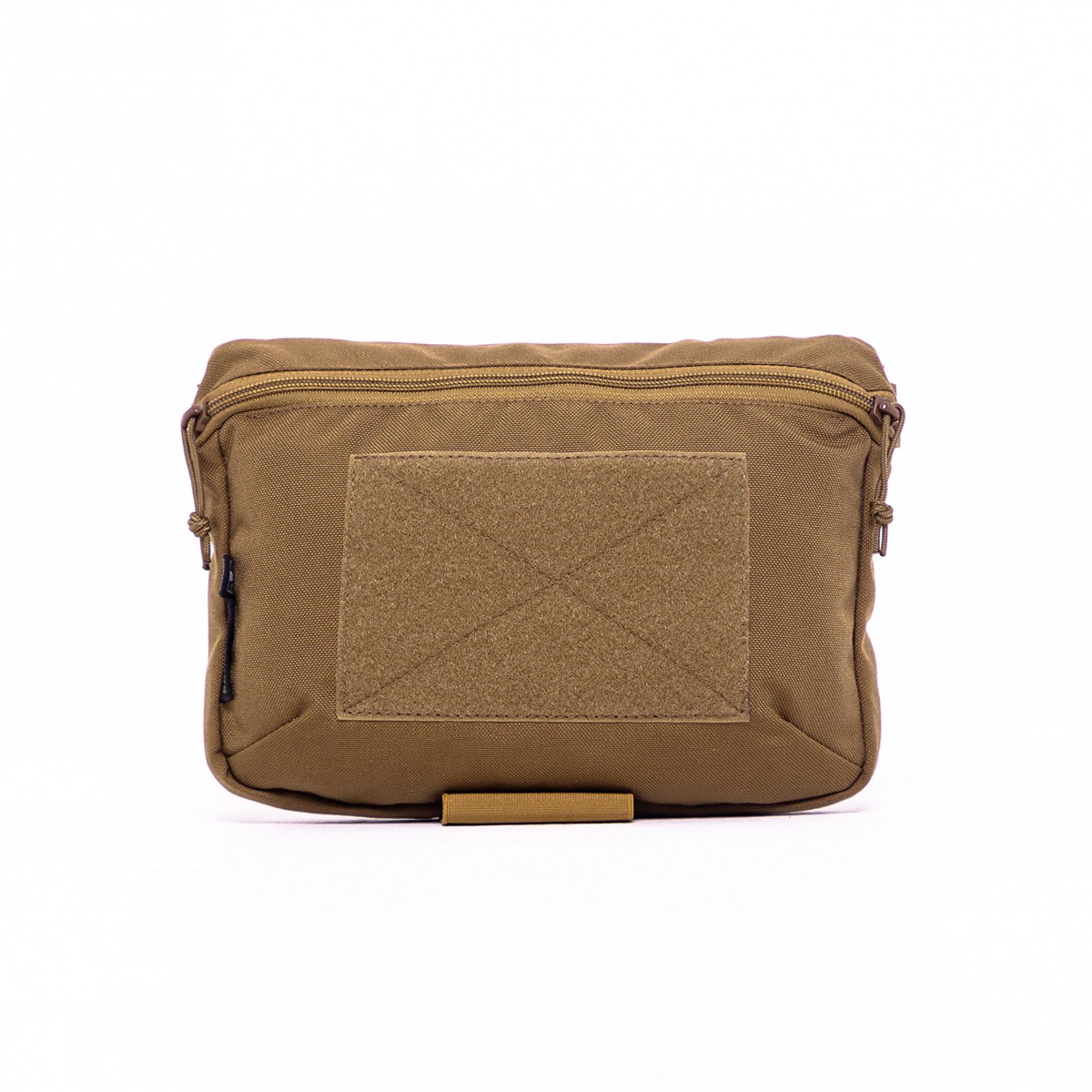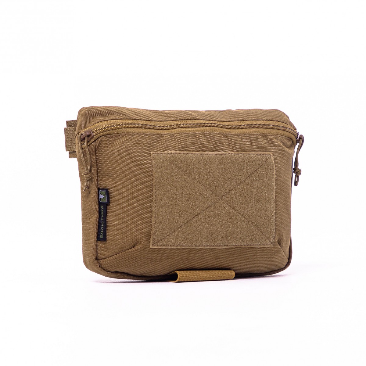 «Ладник» сочетает в себе несколько способов применения. Он может быть напашной сумкой, которая крепится к плитоноске или бронежилету. При установке бронепакета он становится еще и полноценным абдоминальным противоосколочным модулем защиты. А если к нему приобрести ремешок шириной 2,5 или 4 см, то вполне можно использовать в повседневной жизни как бананку или сумку через плечо. Особенности товара Целью конструкторов компании «Баллистика» было создать сумку с возможностью установить бронепакет первого или второго класса защиты, который при этом не будет мешать использовать ее по прямому назначению. В условиях «войны артиллерий» это сверхважно. Кроме того, незаменимым это изделие делают следующие характеристики: Комплектуется двумя съемными велкро-креплениями. Часть с липучкой имеет длину 10 см и вставляется в клапан плитоноски. К подсумку крепления цепляются на карабины, для которых на нем сзади нашиты горизонтальные петли. Две двойные вертикальные петли по бокам сумки предназначены для ремешка (шириной 2,5 или 4 см), который позволяет носить ее как бананку. Ремень в комплекте не идет. Изделие можно использовать как медицинский подсумок благодаря доступу к нему обеими руками. Внешнее эластичное крепление (шириной 8 см) на нижней части позволяет переносить турникет. Основное отделение разделено на два отсека невысокой перегородкой. Окантовка, которой она обшита сверху, внутри имеет полоску пластика для придания ей устойчивости. Внутренние швы усилены отделочной лентой. Также здесь помещен внутренний карман на молнии, в который и вставляется бронепакет. Молния, которой закрывается основное отделение, расположена на передней панели подсумка, на расстоянии 2+ см от верхнего края, что и обеспечивает удобный доступ к содержимому. Два бегунка позволяют раскрывать подсумок на одну или другую сторону. На кармане нашита эластичная лента, поделенная швами на отрезки, в которые можно поместить различные небольшие вещи – от дополнительного турникета или бандажа до батончиков и других необходимых на поле боя припасов. На передней части сумки помещена велкро-панель с ячейками MOLLE (16×7 см). Технические характеристики Внешний материал: Cordura 1000D. Внутренний материал: Oxford 600D. Липучка: Velcro. Фурнитура: Woojin. Стропа: полиамид. Размеры: 25×17×3 см. Вес: 167 г.Основные характеристики Сумка-напашник бананка "Ладник" (Койот)