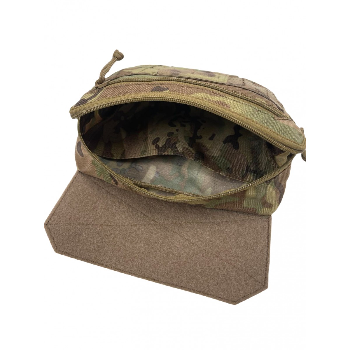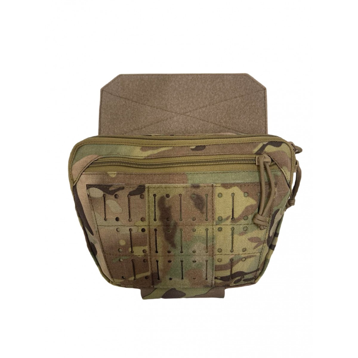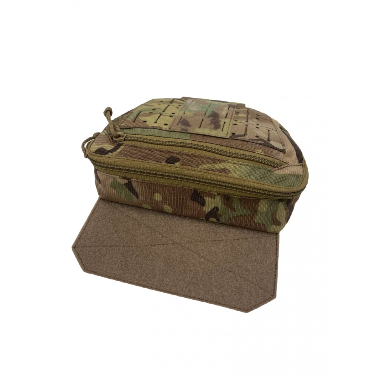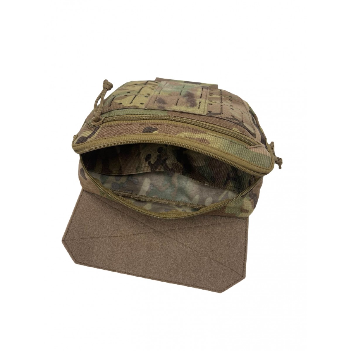 Сумка имеет две большие велкропанели. Фронтальная велкро-панель оснащена интерфейсом MOLLE Laser Cut, позволяющим прикреплять к сумке дополнительное снаряжение, например, итоги или другие аксессуары. Это расширяет функциональность сумки и позволяет персонализировать ее под свои потребности и задачи.