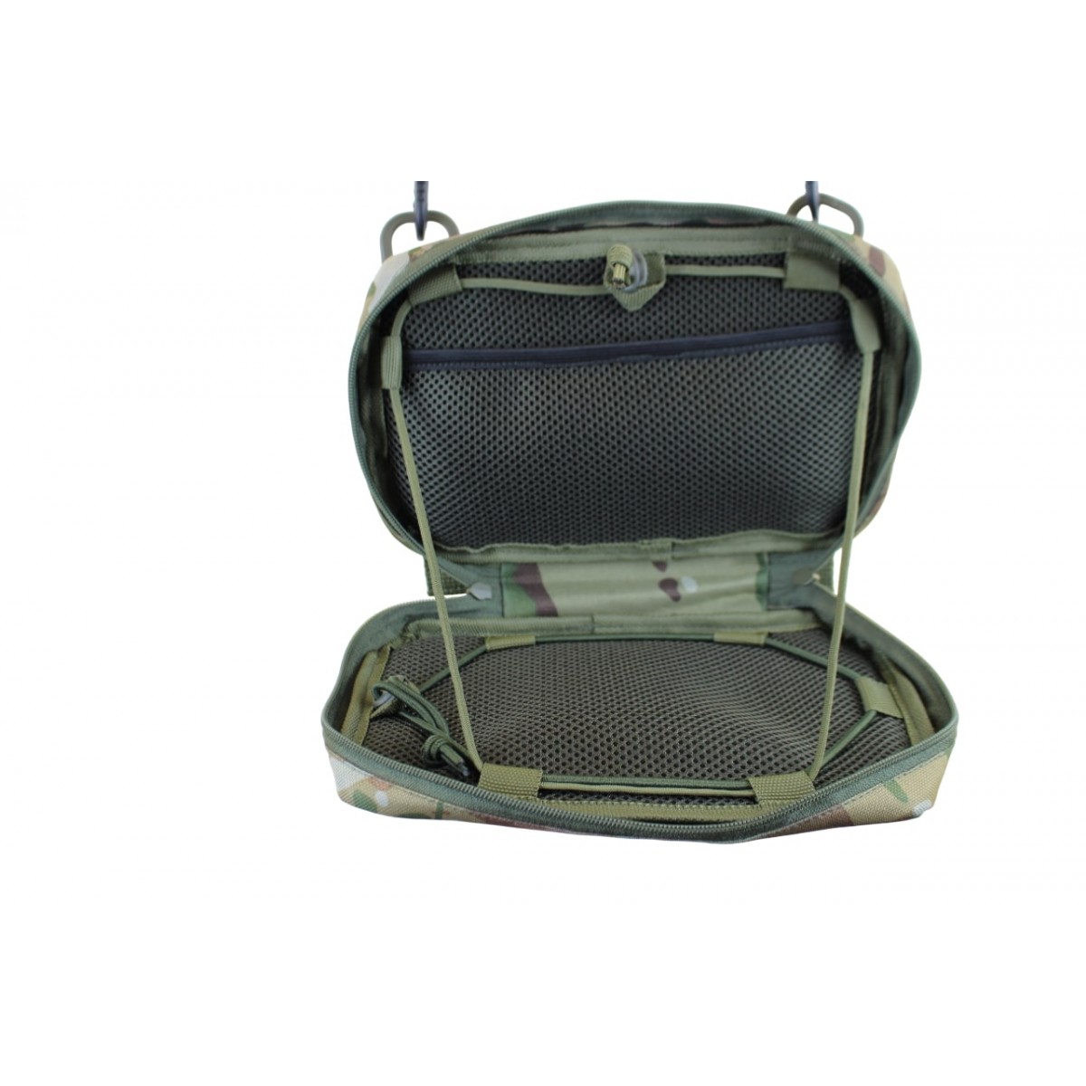 Подсумок для планшета 8.5 дюймов предназначен для защиты и транспортировки планшета. Планшет внутри фиксируется с помощью резинок в углах. Внутри есть плоский карман, например, для блокнота. Система МОЛЛЕ позволяет зафиксировать подсумок на другом снаряжении, бронежилете.