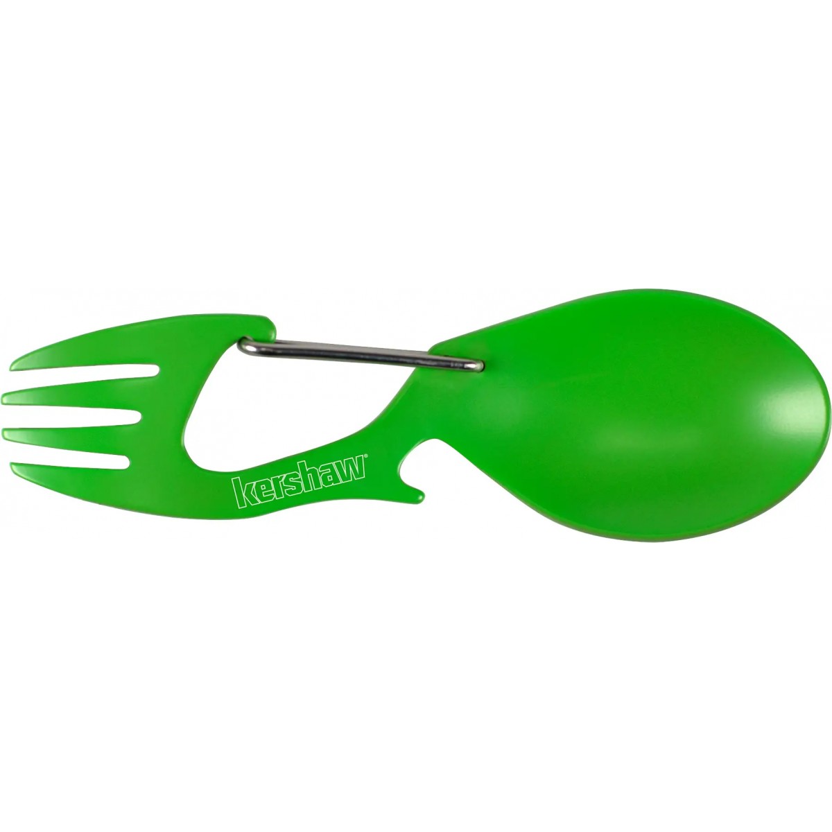 Kershaw Ration - компактный и прочный мультифункциональный столовый прибор, сочетающий в себе ложку и вилку. Изготовлен из стали с матовым антикоррозионным покрытием. Встроенный карабин позволяет разместить инструмент на сумке, рюкзаке и прочем походном снаряжении, а также может быть использован в качестве открывалки для бутылок.
