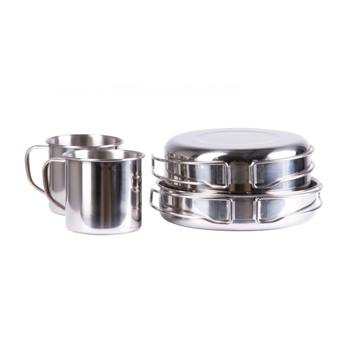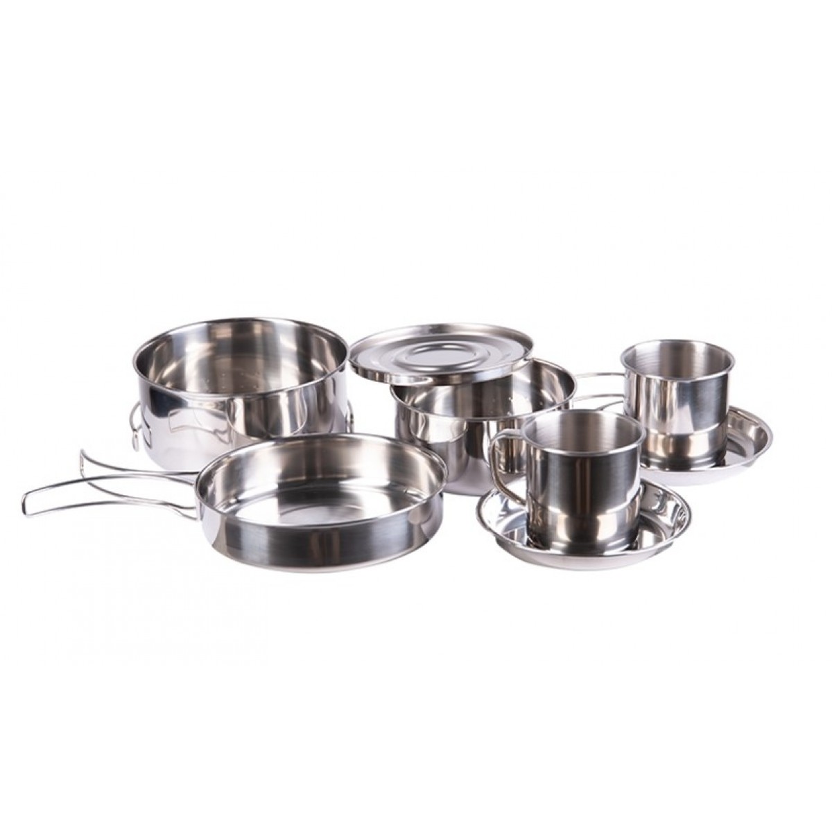 Набор сложной производной посуды из нержавеющей стали, позволяющей приготовить полноразмерную пищу. Посуда легкая, удобная и легко помещается в рюкзак. Компактный размер набора позволяет брать его в путешествие на выживание, в поход или ночную рыбалку. Компактный и практичный, складные ручки, предметы можно складывать друг в друга.