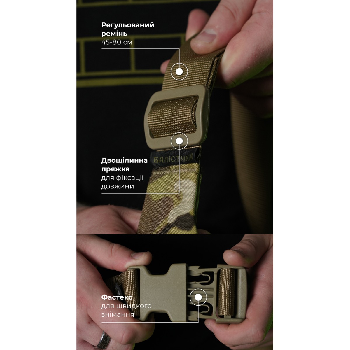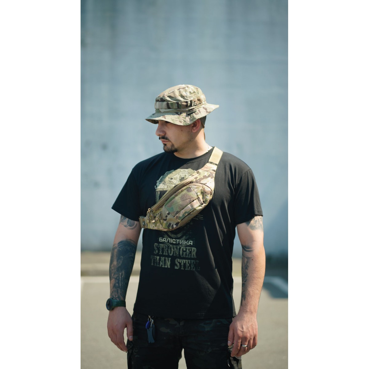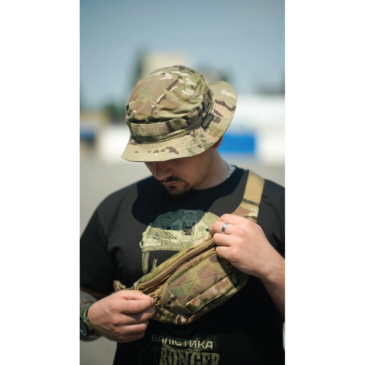 Компактная сумка для ежедневного использования ✅ Ключевые преимущества 3 отдельных отделения Объем 2,9 л – вместит документы, ключи, телефон, кошелек Регулируемый ремень с фастексом Эргономичная обтекаемая форма Велкро-панель 12×5 см на фасаде Прочные материалы: нейлон 500D (аналог Cordura 500D), Oxford 340D, фурнитура YKK и 2M Описание товара Сумка-бананка «Саква» создана для ежедневного использования в городе, активного отдыха, походов. Она легкая, прочная, компактная и пригодится, если вы не любите носить с собой много вещей. Переднее отделение (24×10,5 см) с карабином на эластичной спирали подходит для ключей, пропуска, жетона Основное, самое большое отделение (32×16×6,5 см) оснащено двумя внутренними карманами (21×10 и 9×10 см), в которые можно закинуть несколько батончиков и упаковку джерок Плоское заднее отделение (32×11 см) предназначено для карточек, наличных денег или мелочи ✔️ Благодаря полукруглой форме, суженной к низу, и ремню, пришитому под углом, бананка плотно сидит на талии и не мешает движениям ✔️ Двухщелевая пряжка позволяет регулировать длину ремня, а фастекс – мгновенно снимать или фиксировать бананку на поясе ✔️ Паракордные держатели на бегунках легко открывать даже в перчатках ✔️ Ячейки молли под велкро-панелью выполняют роль скорее милитари-атрибута ❓ Часто задаваемые вопросы Поместится ли большой смартфон? Да. Смартфон с диагональю до 6,7" в массивном чехле легко поместится в основном и заднем отделении. В самое маленькое переднее его лучше не пытаться втиснуть. Оно рассчитано на более мелкие вещи: ключи, карты, кейс с наушниками, складной нож или фонарик. Удобно ли носить бананку через плечо? Да. Ремень пришит под небольшим углом, поэтому сумка плотно прилегает к телу как на поясе, так и в положении через плечо. Можно ли что-то цеплять на молли? Да, но ячейки скорее декоративные. Они выдержат легкий инвентарь – карабин с перчатками, брелок, но не предназначены для чего-то громоздкого. Не мешает ли бананка во время бега или на тренировках? Нет. Благодаря эргономичной форме и регулируемому ремню сумка хорошо сидит и не сковывает движений. Можно ли стирать? Да, но осторожно. Рекомендуется ручная стирка или очистка щеткой с водой и безфосфатным порошком.Отзывы о Сумка-бананка "Саква" (Размер М | Мультикам неоригинальный) ТМ Баллистика
