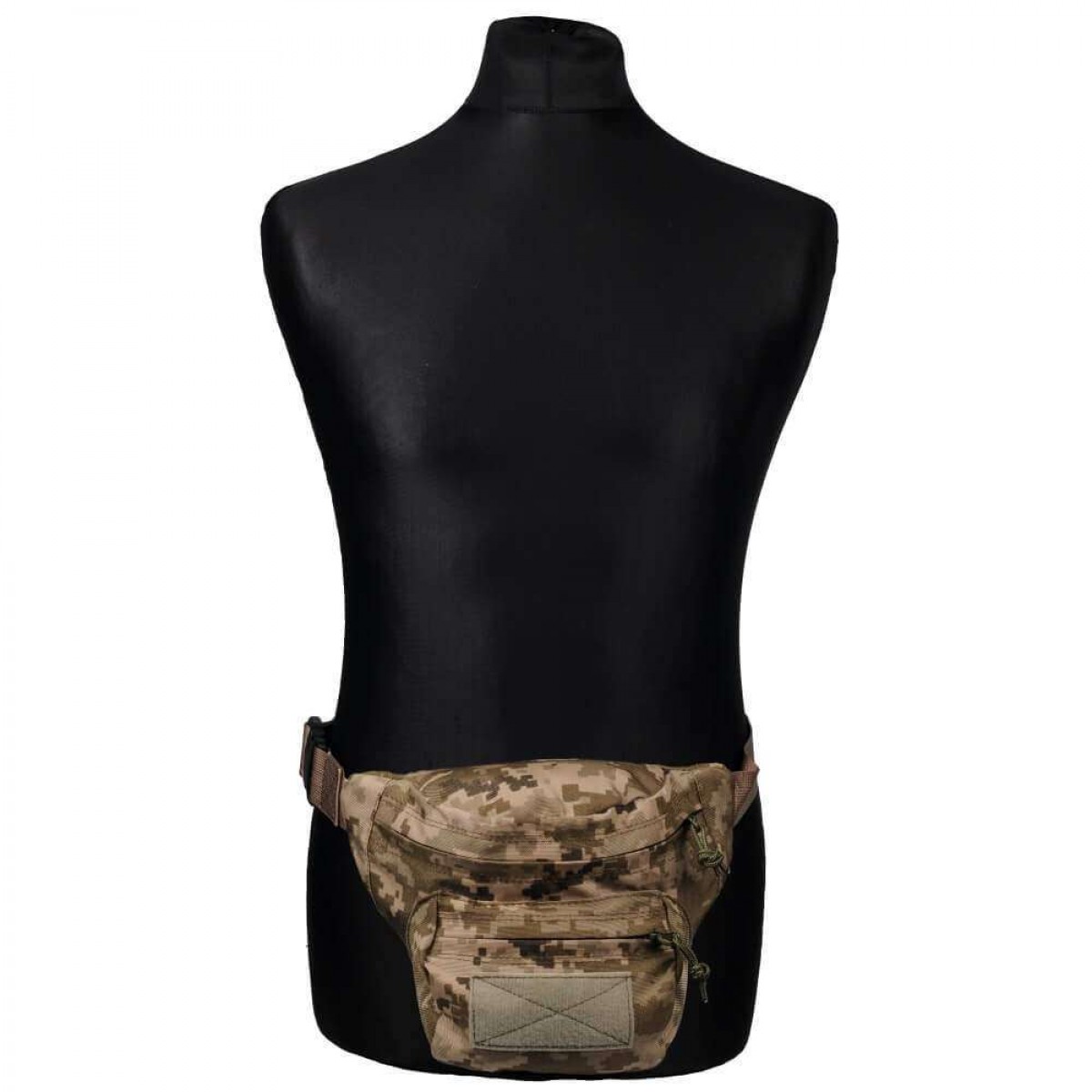 Поясная сумка(Fanny pack) предназначена для хранения различных мелочей. Имеет три отделения- основное,наружный карман и потайное отделение на спинке сумки. В основное отделение вполне комфортно помещается пистолет ПМ. На наружном кармане размещена липучка велкро для размещения патчей. На донышке вшит люверс для стока воды. Купить поясную сумку fanny pack можно в шести основных камуфляжных цветах.