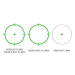 - Прицельная сетка: точка 2 МОА; круг 65 МОА; точка 2 МОА в круге 65 МОА