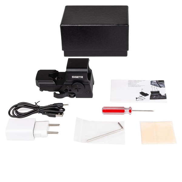 SIGETA AntiRU-02 – высокотехнологичный коллиматорный прицел открытого типа в модельном ряде Sigeta. Он предоставляет пользователю большую степень свободы от элементов питания за счет использования аккумулятора (CR2032 Rechargable) с возможностью зарядки прямо в корпусе коллиматора по USB от сети через блок питания (есть в комплекте) или PowerBank.