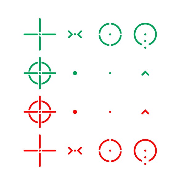 - Выбор цвета прицельной сетки: красный/зеленый