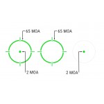 Система Holosun MRS (Multi-Reticle System) предлагает пользователю гибкость в использовании прицела, позволяя быстро включать или отключать любую сетку и применять именно ту, которая нужна для работы: точка 2 MOA, круг 65 MOA, точка + круг.