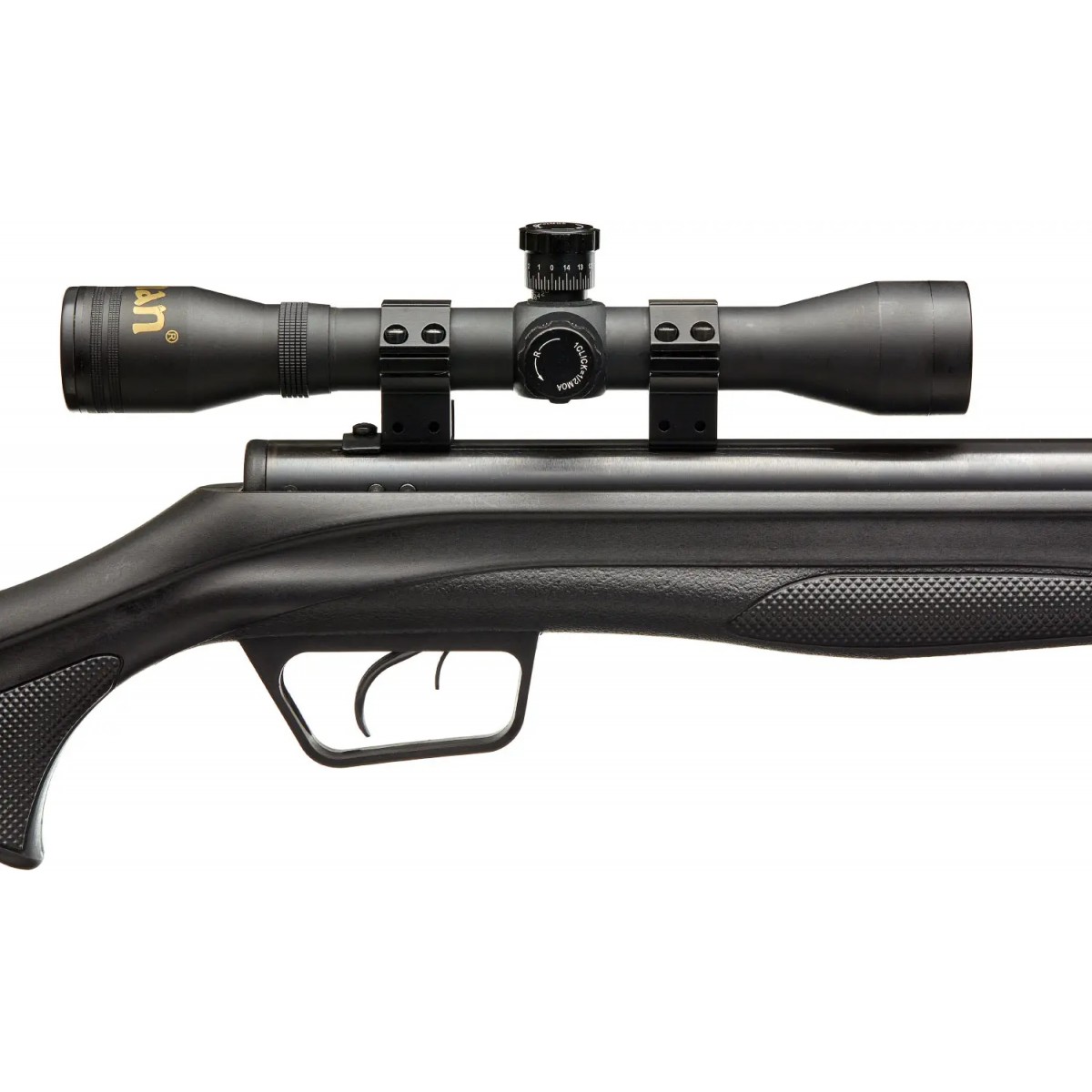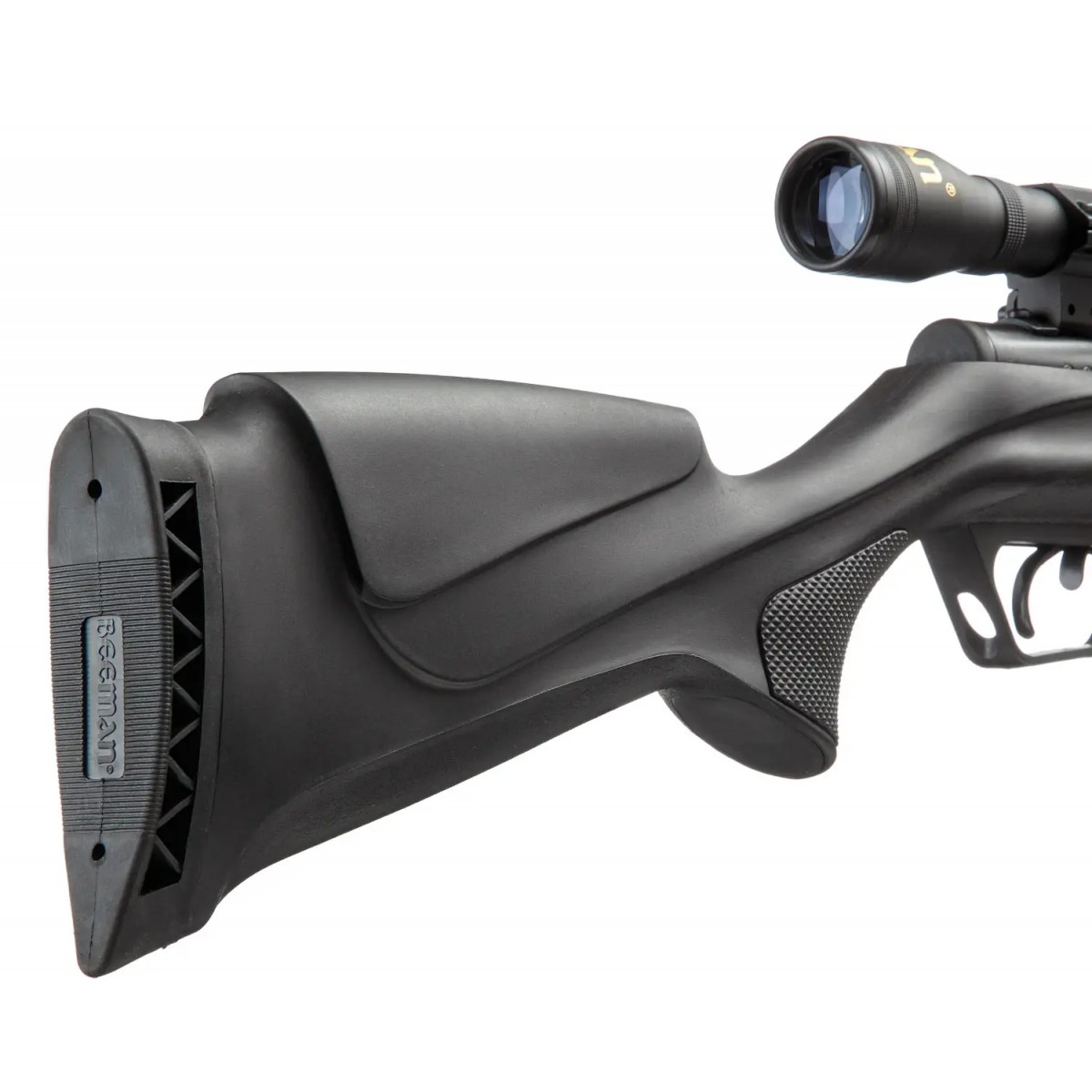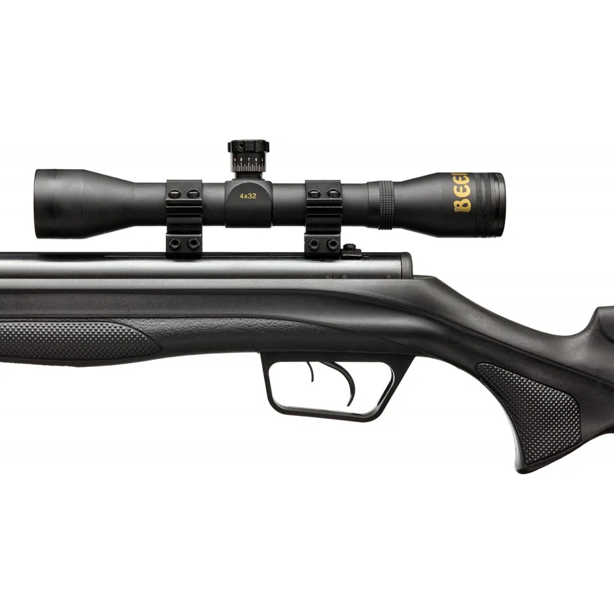 Модель комплектуется оптическим прицелом Beeman 4х32 с сеткой Crosshair и кольцами на "Ласточкин хвост".