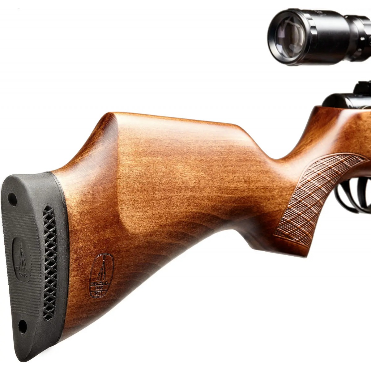 Особенности: - Холоднокованый ствол. - Деревянное ложе из бука с насечками для более надежного и комфортного удержания. - Резиновый затыльник.