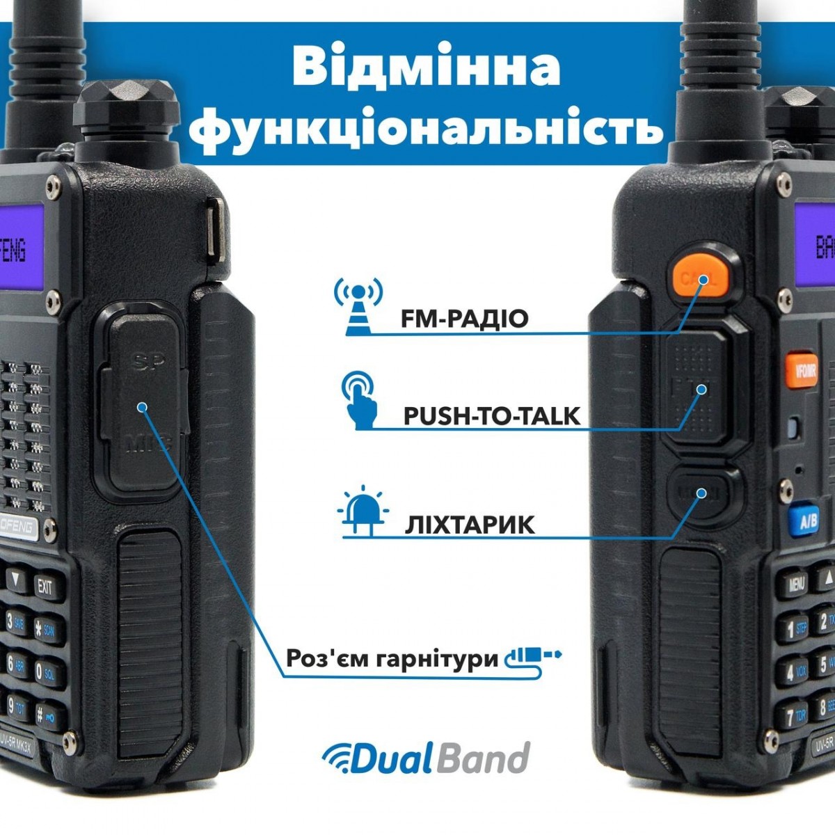 Baofeng UV-5R MK3X - это рация используемая многими службами: частная охрана, общественные службы, больницы, бары, рестораны, военные учреждения.