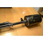 Все гениальное просто. Зачем покупать дорогой глушитель, когда для узких задач можно использовать переходник к масляному фильтру? Конструкция фильтра очень похожа на конструкцию однокамерного глушителя, только без отверстия. Вы легко сможете сделать отверстие первым выстрелом. Даже первый выстрел через фильтр на дистанции 30 метров прилетает в цель, пуля просто не замечает тонкую металлическую стенку фильтра.