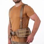 Ременно-плечевая система состоит из разгрузочного пояса и лямок, которые служат для поддержки. В системе от «Баллистики» они не являются обязательными, поскольку пояс приспособлен для автономного ношения. Однако подтяжки все же служат дополнительной опорой и добавляют комфорта при использовании РПС. Особенности изделия Лямки идут в комплекте к ременно-плечевой системе как дополнительный аксессуар. Хоть они и не являются обязательными, в случае навешивания тяжелого снаряжения могут забрать на себя часть веса. Кроме того, характеризуются следующими признаками: Четыре точки крепления обеспечивают равномерное распределение веса на плечи. Лямки фиксируются на поясе двухщелевыми пряжками, которыми к тому же можно регулировать их длину. Свободные концы закрепляются с помощью эластичных фиксаторов. Наспинный соединительный ремень не дает лямкам сползать. Для производства использована ременная стропа 5 см и 2,5 см, которая выдержит вес любого снаряжения. Технические характеристики Материал: полиамидная стропа 50 мм и 25 мм. Размер: универсальный.Основные характеристики Лямки для РПС (Койот)
