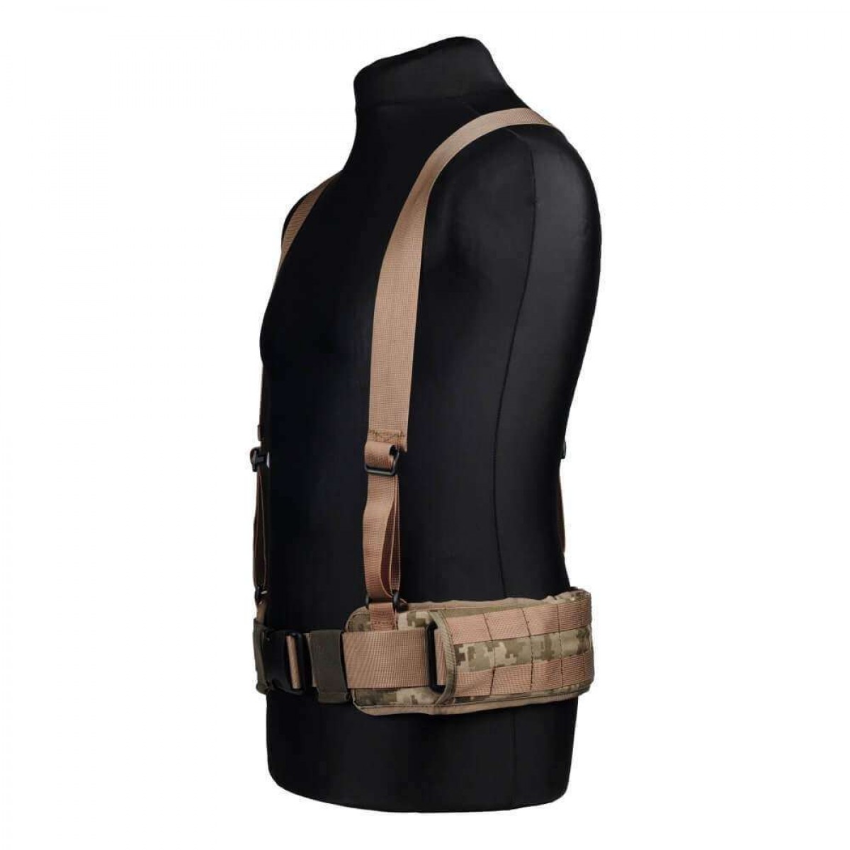 Тактический разгрузочный пояс(варбелт,батлбелт). По сути,это панель со стропами MOLLE и регулируемыми плечевыми лямками. Предназначен для размещения различных подсумков и другого снаряжения.